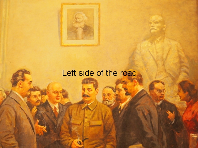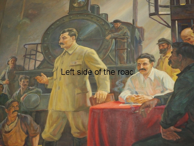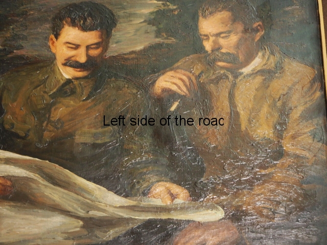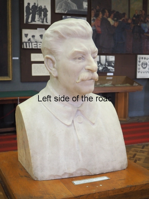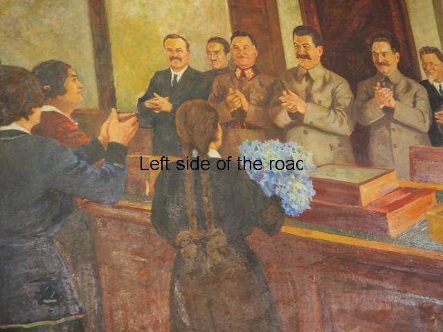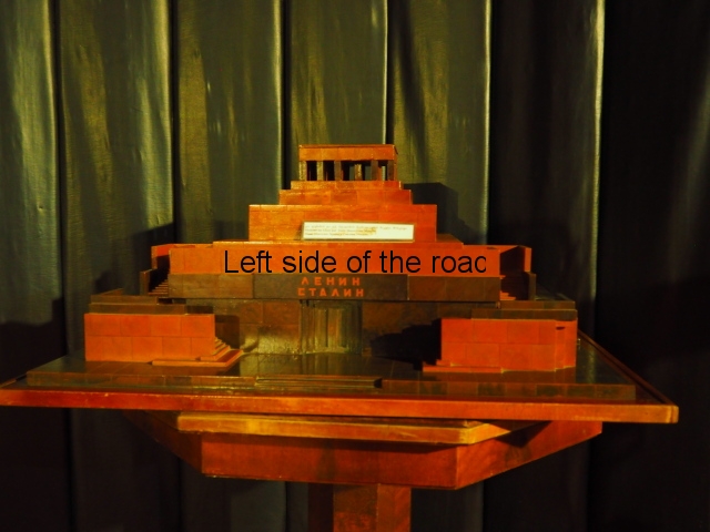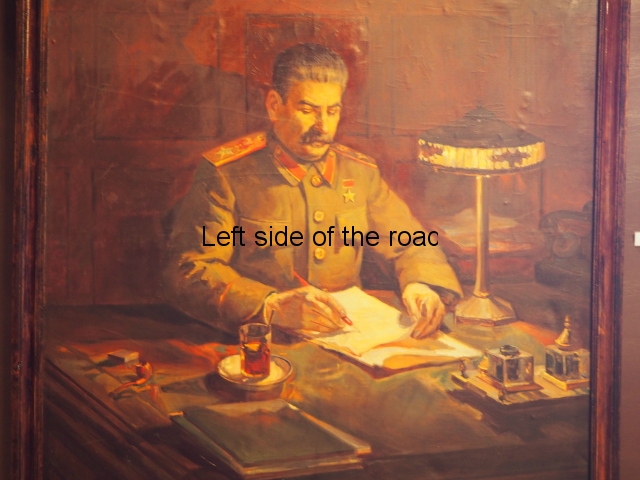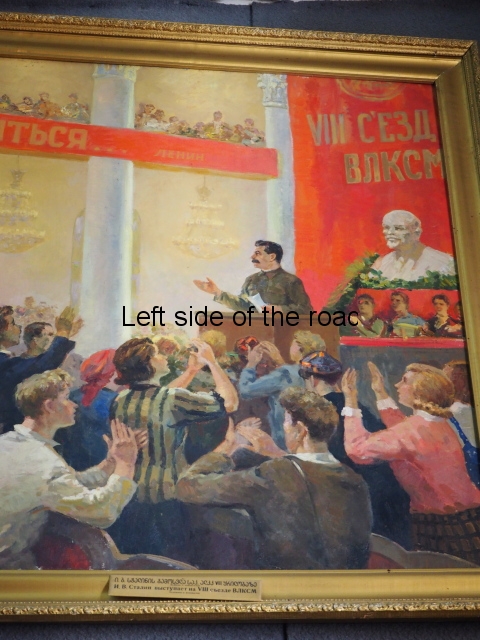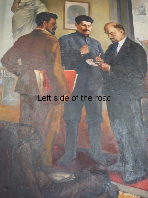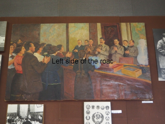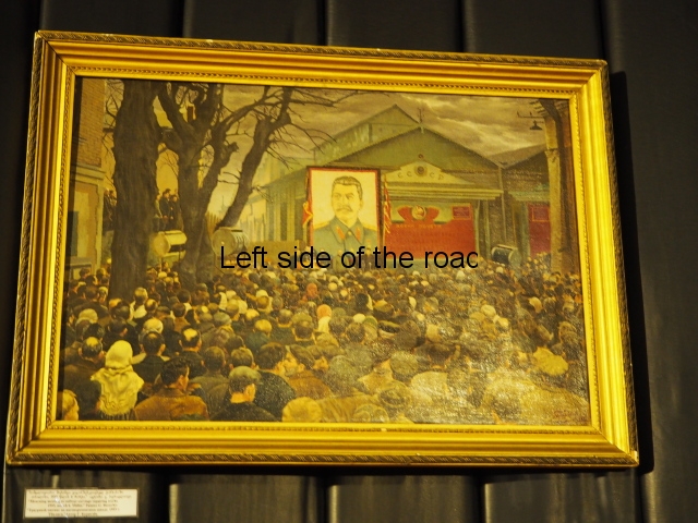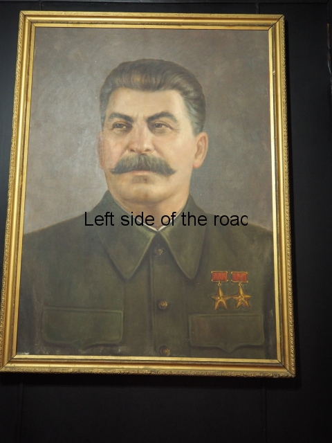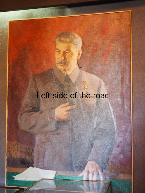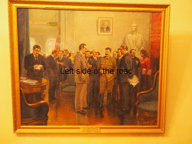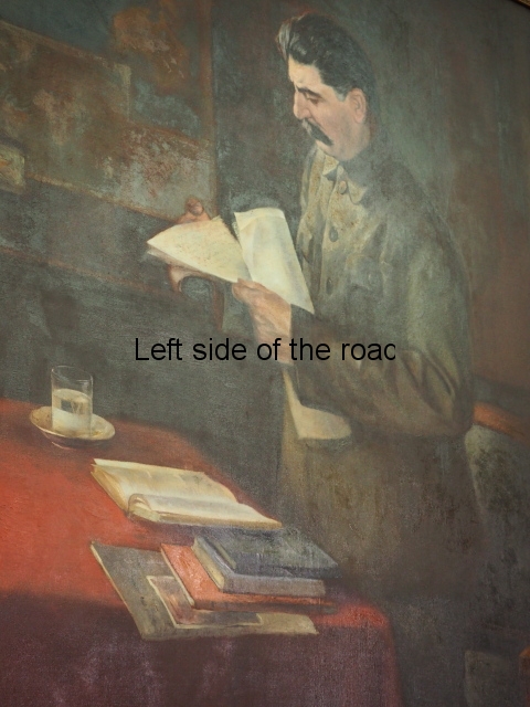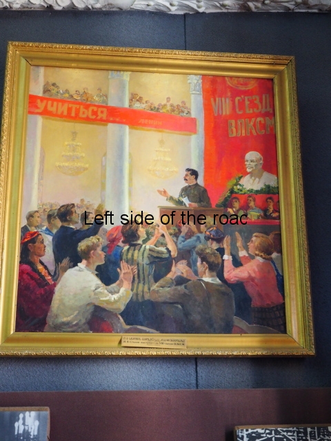 Highlights in this room are: Stalin’s death mask; a painting of Stalin lying in state and a maquette of the Mausoleum in Red Square bearing the names of both Lenin and Stalin.