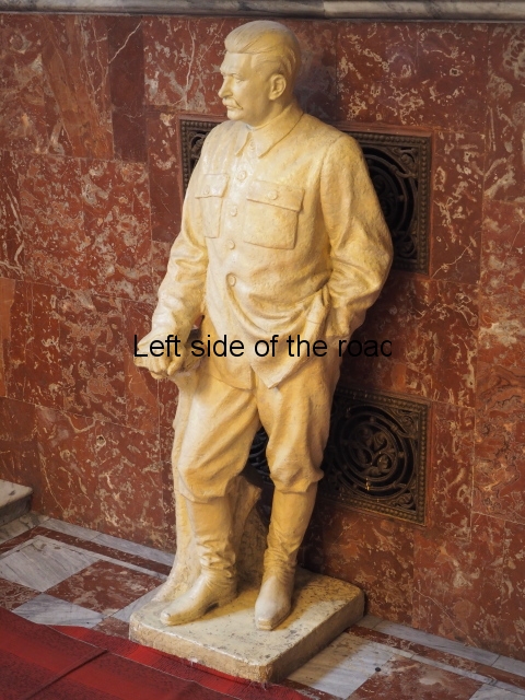 And one thing that demonstrates the dis-ingenuousness of these statues is the fact that Stalin’s right hand is resting on a book of his own writings, with his name in Georgian script on the spine. Never in his lifetime would Stalin self-reference in such a manner. If his hand would be on a book it would have been either on one of Marx, Engels or Lenin – never himself.