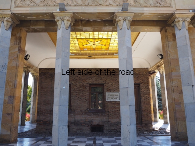The humble building in which Stalin was born is almost unrecognisable now. Although restored to an almost new condition the two room building – of which on the tour you only see one – has been surrounded by a grand and almost temple like Doric structure. This is topped by a glass dome on which is a magnificent star and in each corner there’s a hammer and sickle symbol. This was erected in 1939. This is lit up at night and looks quite impressive with the various light temperatures, giving off a golden and green glow at the same time.