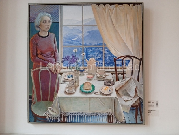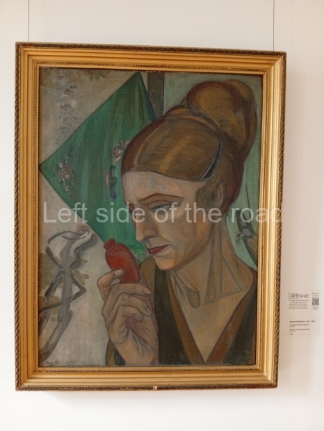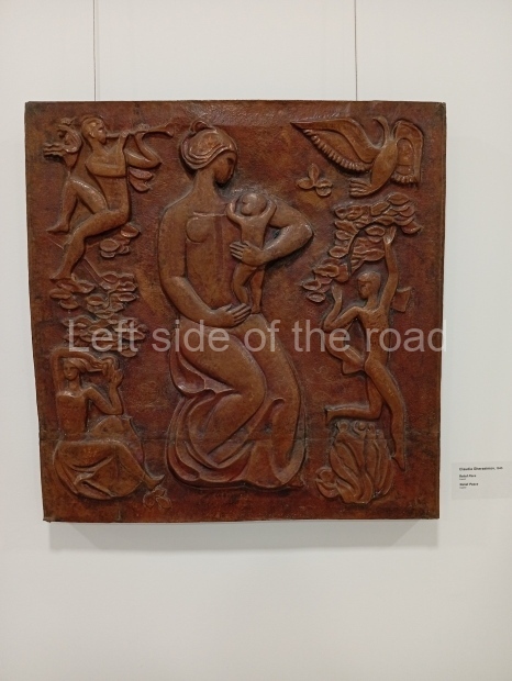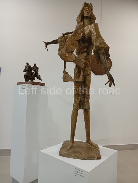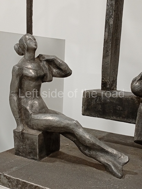 Behind him, is a female standing with her left arm raised with the forearm resting on her head. This would seem to indicate mourning and sadness but also a realisation that the possible sacrifice of the male (as there is no certainty that those going off to war will return) is necessary for the common good. The expression on her face also indicates grief.