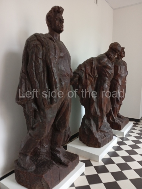 The next four stelae have images of ranks of armed Soviet soldiers, in all of them marching forward – even though some of their comrades are injured – and urging those behind to join the fight. They are showing determination to throw out the invader although, in the actual war, there were some serious setbacks. But after the victory of the Red Army in Stalingrad the outcome of the war was certain. It was no longer a question of if, it was a question of when.