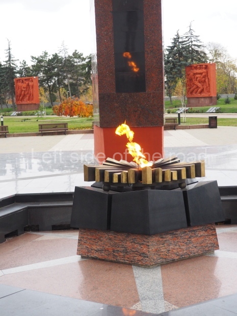 I have read that the pyramid and the Eternal Flame used to have a permanent honour guard (changing every hour on the hour) but that was not the case when I visited in 2025. It’s more than likely that now the honour guard is only in place during the days surrounding the May 9th Victory Day – which is still celebrated (and is a public holiday) in Moldova. This was the situation in May 2025 in Stalingrad in Russia.