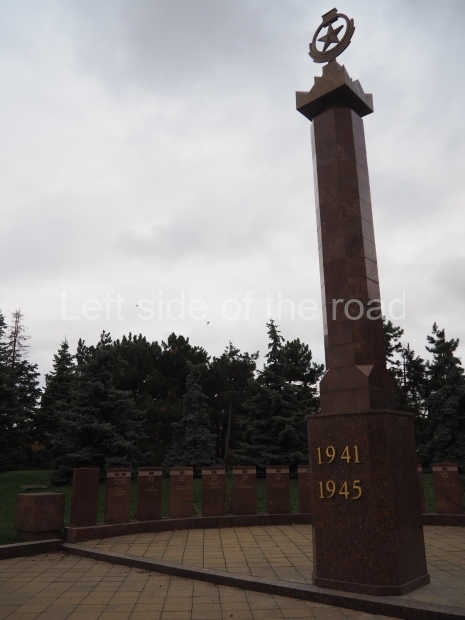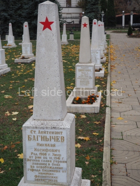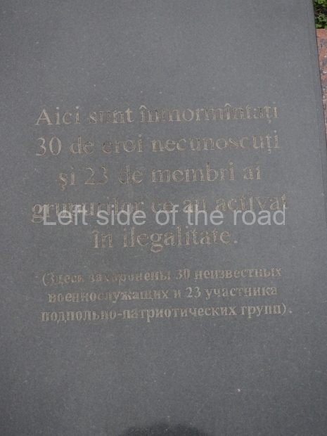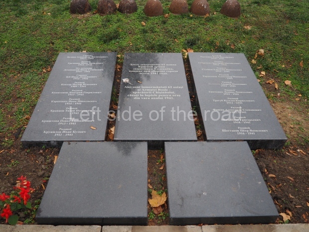 Near to the gated entrance to the complex there’s an alcove reached by a couple of steps which contains a semi-circle of marble stelae inscribed with the names of Heroes of the Soviet Union – one of them celebrating the achievements of Semyon Timoshenko. I’m not really sure why his name is included on the honour roll here. He was born in the Odesa Oblast in the Ukraine (which is close but still a separate Republic of the Soviet Union) and I’ve seen no reference to him being involved in any of the fronts that were established in Chișinău/Moldova.