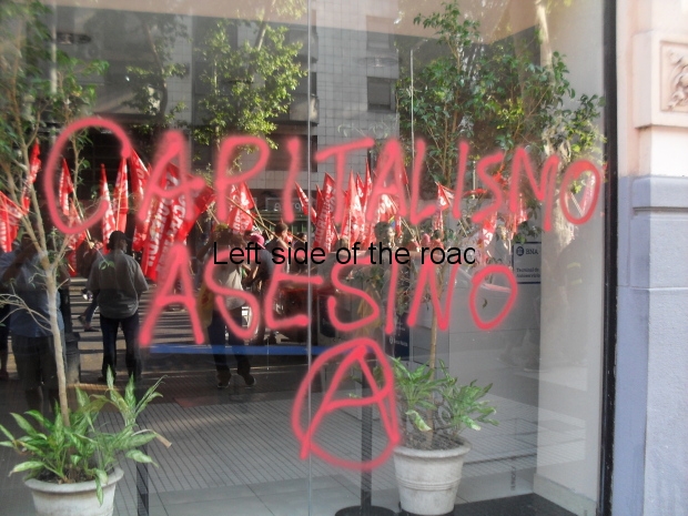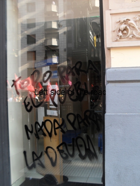 The march moved off, hesitatingly, at just after 15.30 and arrived at the Congress Building about two hours later. From there the march broke into different groups following a route they had planned beforehand, taking the message to the people living in that area and then (I learnt afterwards) heading towards the Teatro Colon where a Gala was to be held at more or less that time. I’m sure the ‘dignitaries’ had all arrived there in plenty of time to avoid being molested by the hoi poloi.)