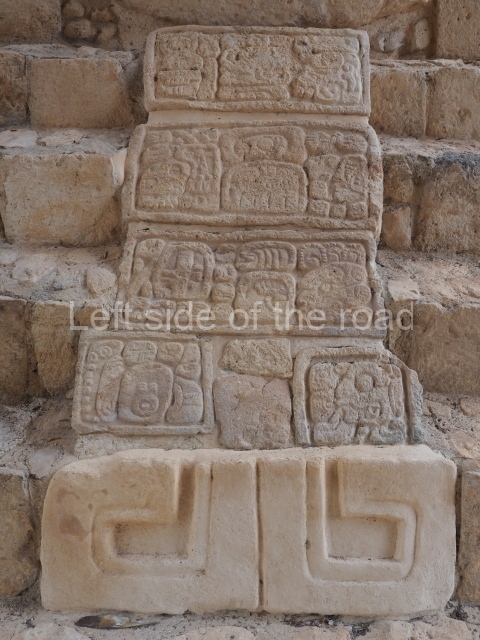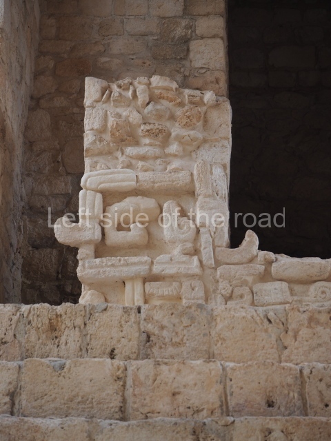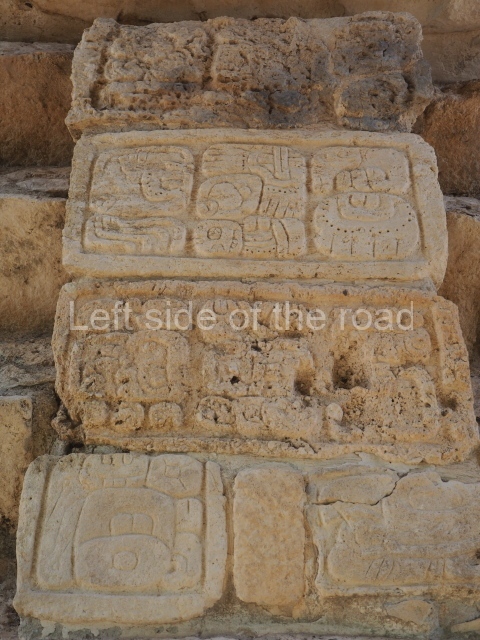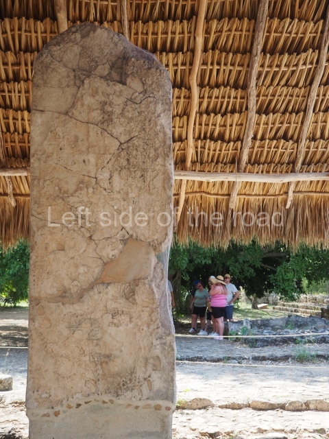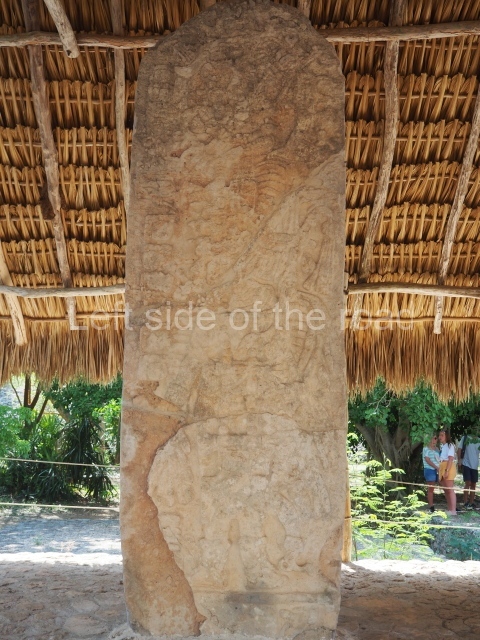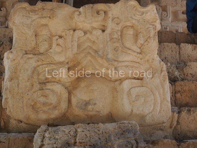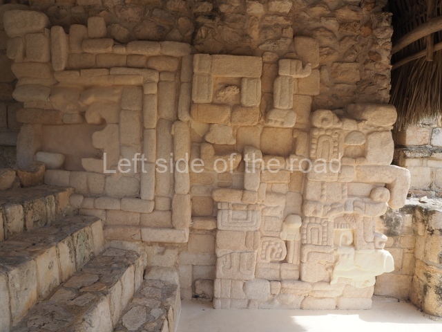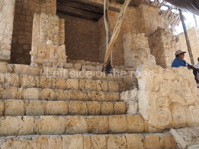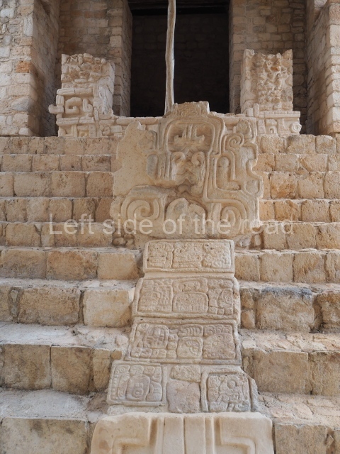 Stelae 1 and 2 were the only such monuments found inside the walled area; another stela was rescued from a nearby bank of materials but it was not erected at the site during pre-Hispanic times. Stela 2 is greatly eroded, but Stela 1 displays beautifully carved bas reliefs of two governors of Ek’ Balam; the one at the top is Ukit Kan Le’k, represented as a deified ancestor. The principal figure is a king who erected his stela on 18 January 840 to commemorate his coronation; the name is eroded and nowadays only partly legible: ‘… K’uh Nal ….’