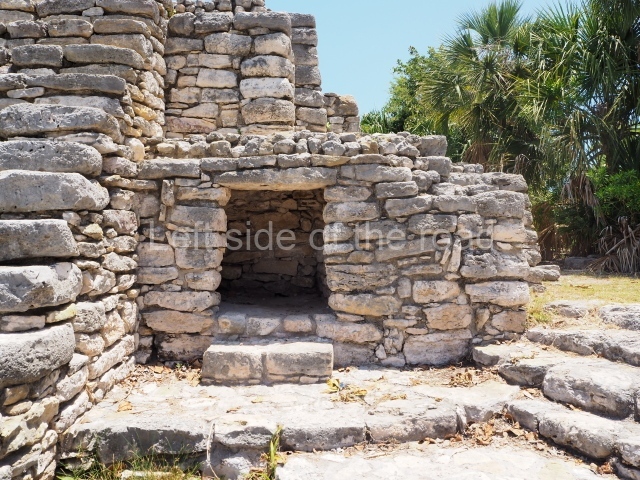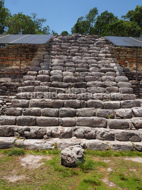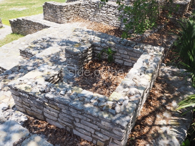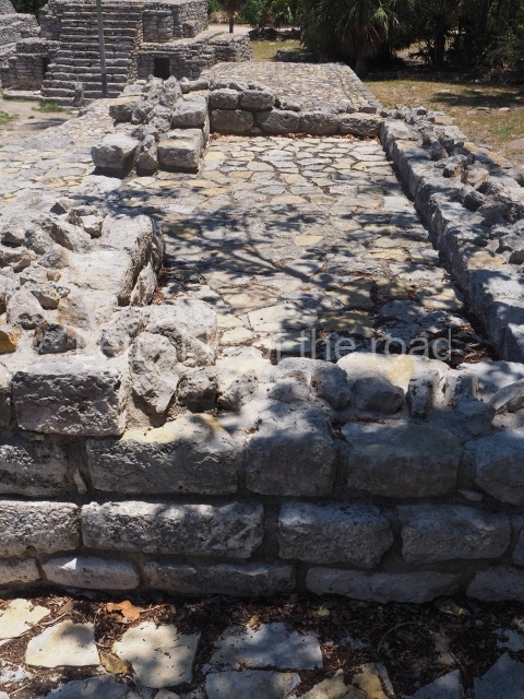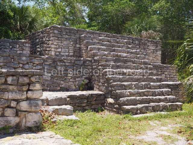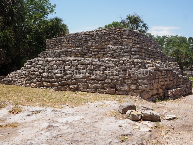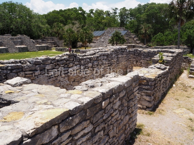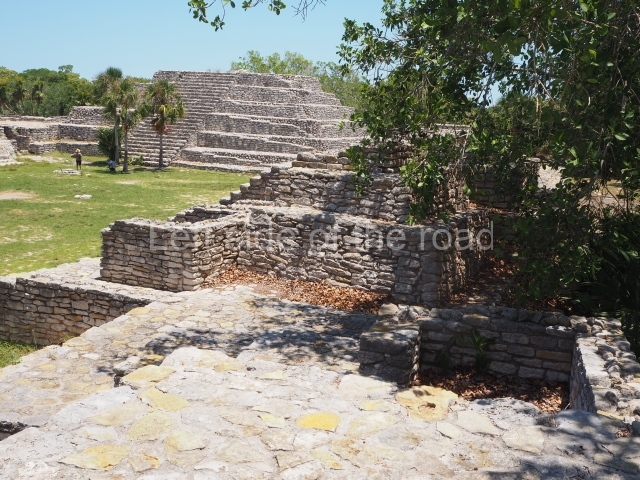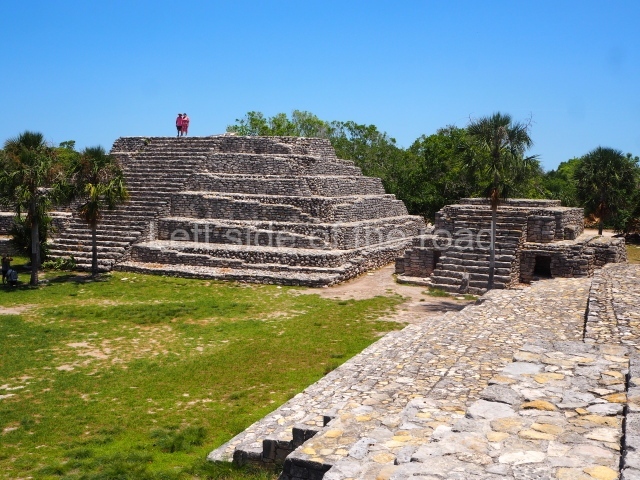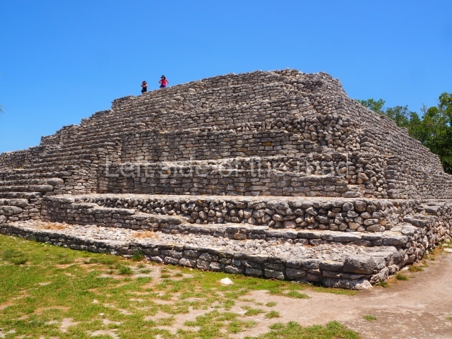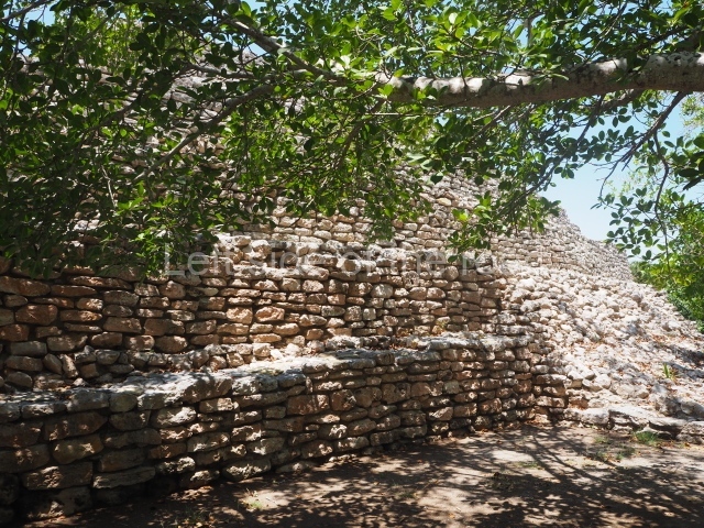From the architectural point of view, the most notable buildings at Xcambo display a mixture of elements that are characteristic of at least two styles from the Classic period: the Peten and Megalithic or Izamaleno style, which characterises the Early Classic constructions in northern Yucatan (stepped pyramids, rounded corners, inset corners, sloping platforms, small decorative stairways, thick stucco floors and painted stucco masks). At this site it is also possible to see architecture based on coarse rectangular blocks and rough stone slabs with dry or mortar joints, covered with thick stucco floors to hide the imperfections in the walls.