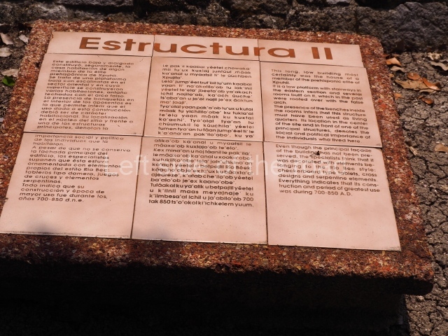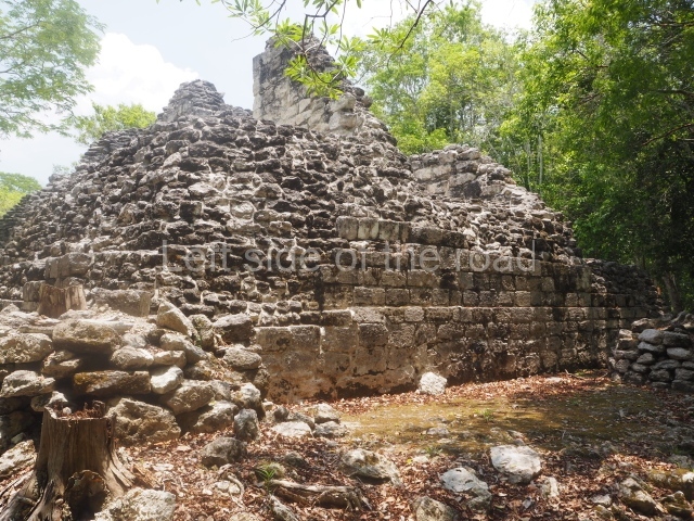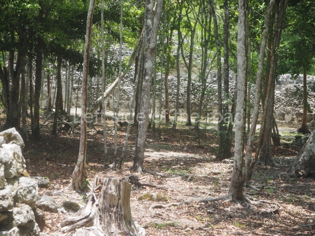 The site entrance is only a short walk from the area that the buses and combis stop, in Xpujil town, on the main highway between Chetumal and Puerto Escarsega. Follow the road west, on the right hand side and the entrance is to the right of the pavement, just as the road starts to climb slightly.