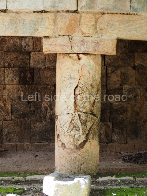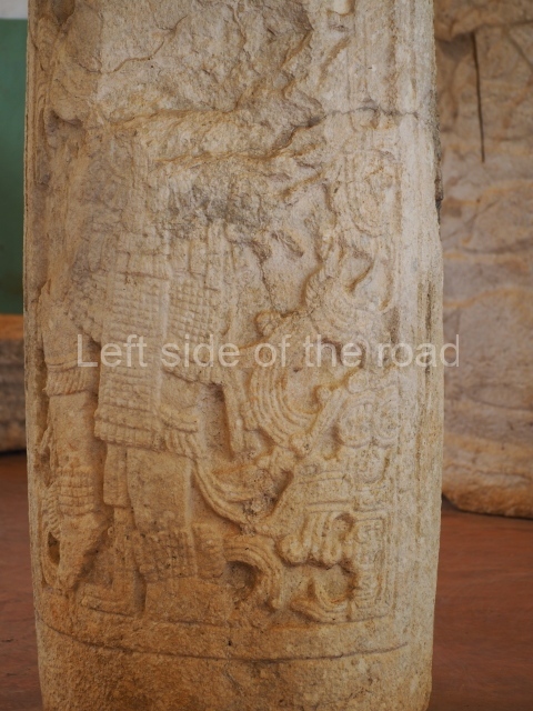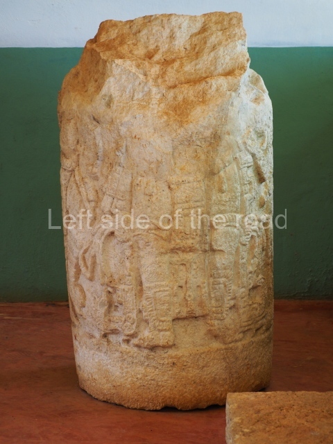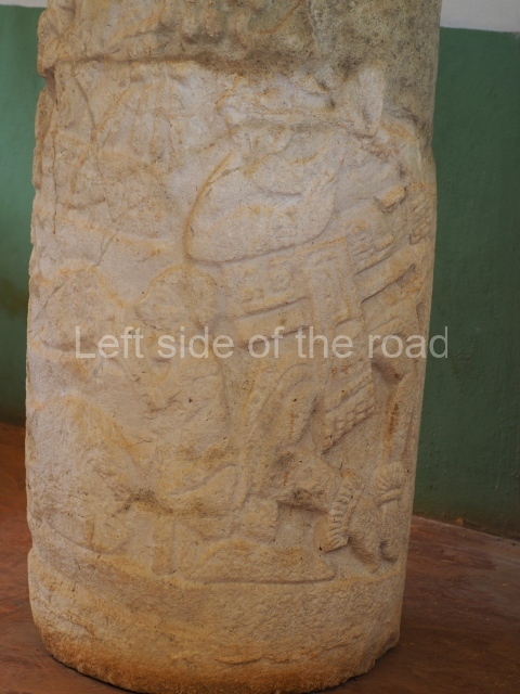 This is situated in the south-eastern section of the site and was thus named because of the size of the lintel above the main entrance. It once contained three rooms but only the central one is still standing. It was built between AD 700 and 800. Several pieces from Xcalumkin are on display at the Hecelchakan Museum and in various museums in Campeche City (the Baluarte de la Soledad tower and Fort Saint Michael). The most interesting items are the monolithic columns with large hieroglyphs. These formed the entrances of some of the palaces at the site. Other important items are the blocks of stone with glyphs culminating in serpents’ heads, which formed part of an impressive hieroglyphic doorway. There are also jambstones and panels depicting important pre-Hispanic dignitaries at the ancient site.