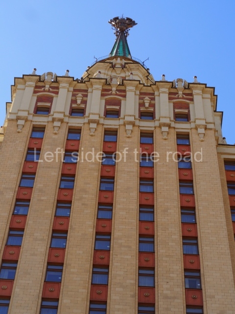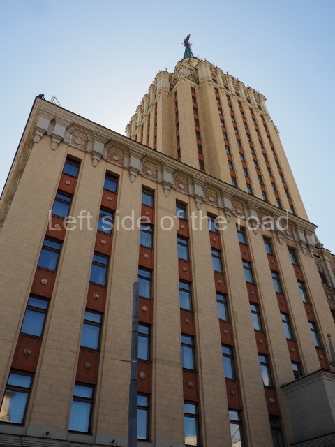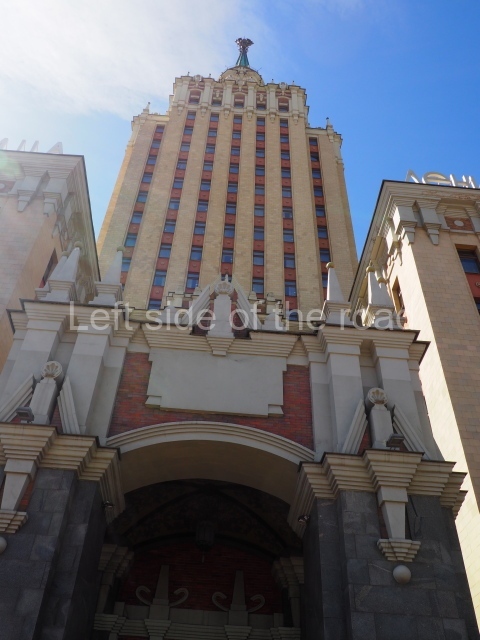 The Hilton Moscow Leningradskaya (Russian: Гостиница Ленинградская) is one of Moscow’s Seven Sisters, skyscrapers built in the early 1950s in the neoclassical style. Russian neoclassical architecture mixes the Russian neoclassical style with the style of American skyscrapers of the 1930s. A main element of Russian neoclassicism is its use of socialist realism art. The hotel, completed in 1954, was designed to be the finest luxury hotel in Moscow.