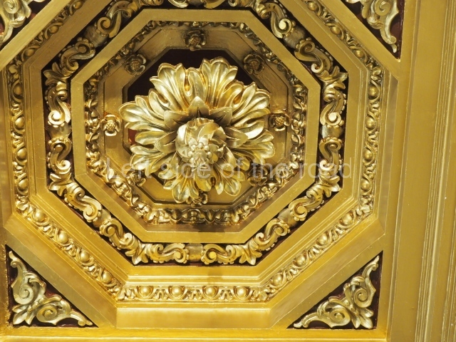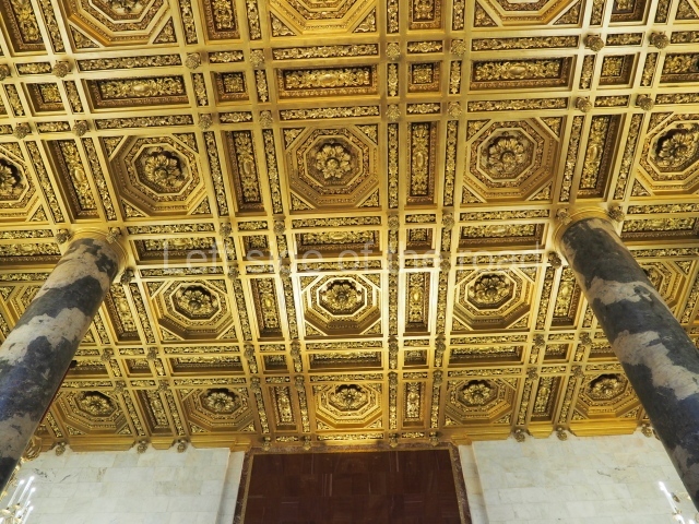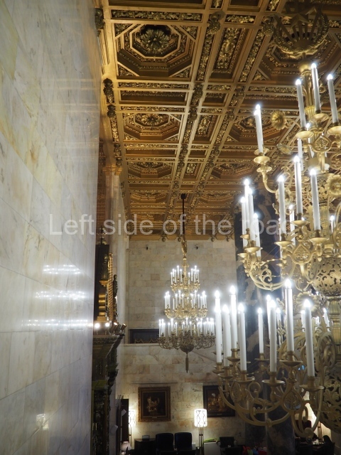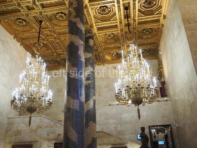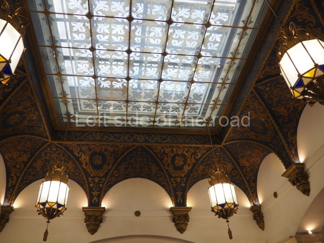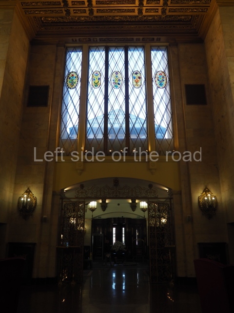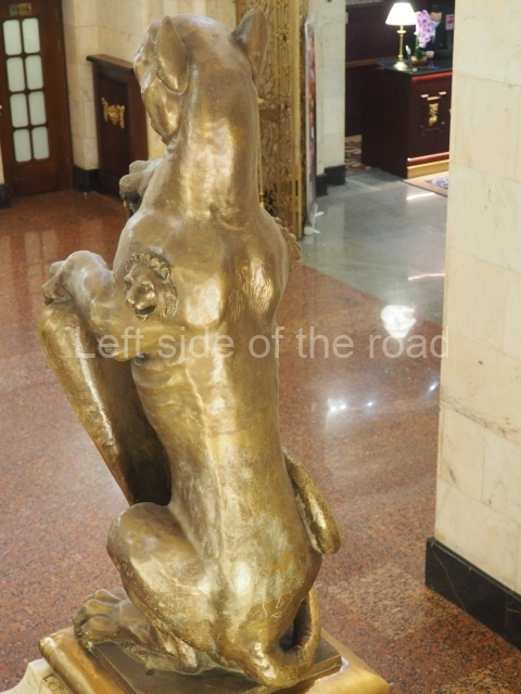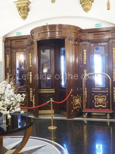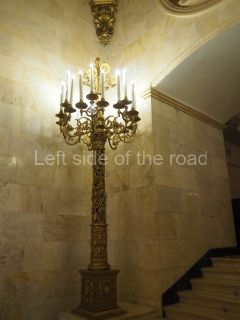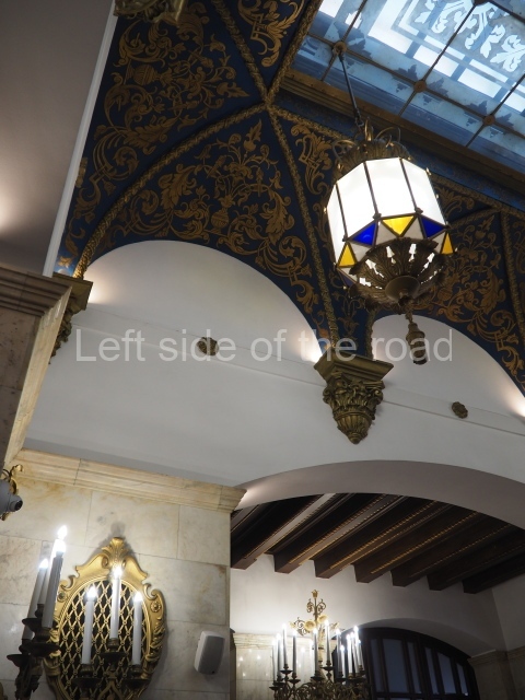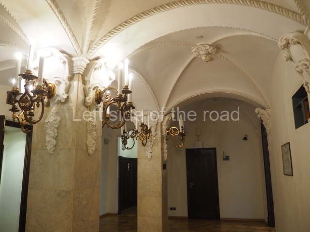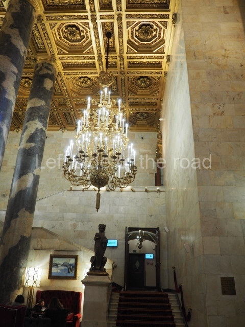The staircase features one of the longest lighting fixtures in the world—it was once in The Guinness Book of Records. The halls and corridors of the hotel’s upper floors are panelled in dark cherry wood.
