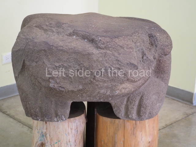 The abundance of volcanic rock around the central valley offered a raw material for making monumental sculptures. It also explains why Kaminaljuyu boasts one of the largest sculptural groups from the Preclassic (800 BC-AD 300). The exact number of monuments at the site is not yet known, but the inventory already lists around one hundred specimens. In addition to the two areas excavated and covered by large roofs to protect the structures, visitors can stroll around the park and see some of the structures covered by grass. There are also a few monuments still in their original location. For example, the Acropolis contains two outstanding monuments: a jaguar with a butt, which represents a ball-court marker and would appear to be one of a pair, the other specimen being Monument 34, currently on display at the National Museum of Archaeology and Ethnology; and a skull-shaped incense burner associated with Building G. Other monuments at the park include various smooth stelae scattered around the grounds and Stela 26, situated in the lower plaza near the Palangana. This monument displays a sculpted sky band at its base. On the other side of Calle 11 at the park, behind the Palangana, in Building C-III-2, are monuments 42 and 43 associated with a talud-tablero structure. Monument 43 represents a headdress that appears to rise from a platform. Other monuments were found at the park but are now on display at the National Museum of Archaeology and Ethnology (still closed in the summer of 2023).