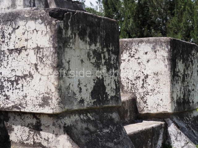 Perhaps further proof that this was NOT the way the buildings looked when they were being used is the fact that the concrete has barley lasted a century and is crumbling in many places. It also looks dirty and I don’t think that fits in with the Mayan aesthetic.