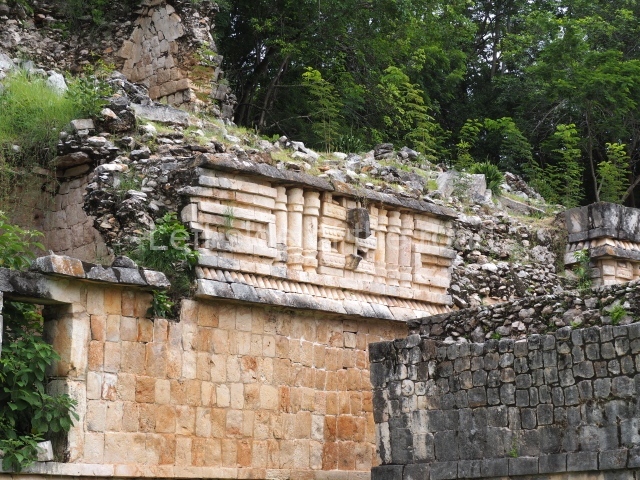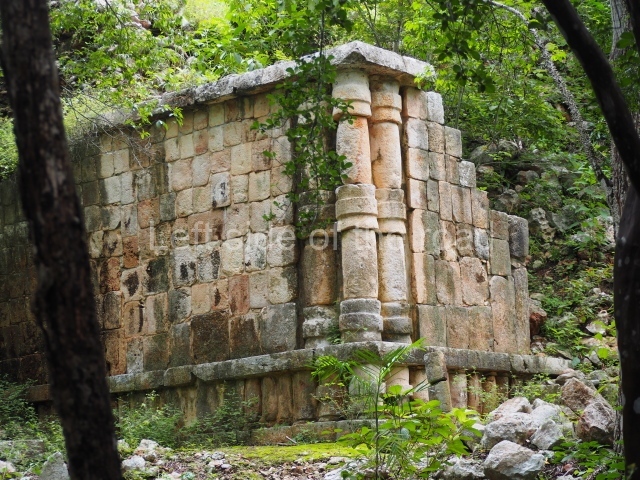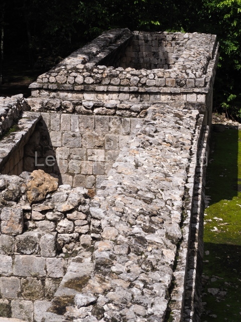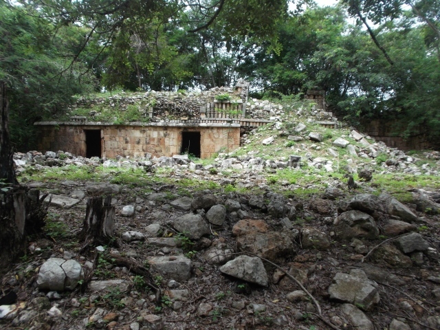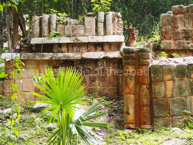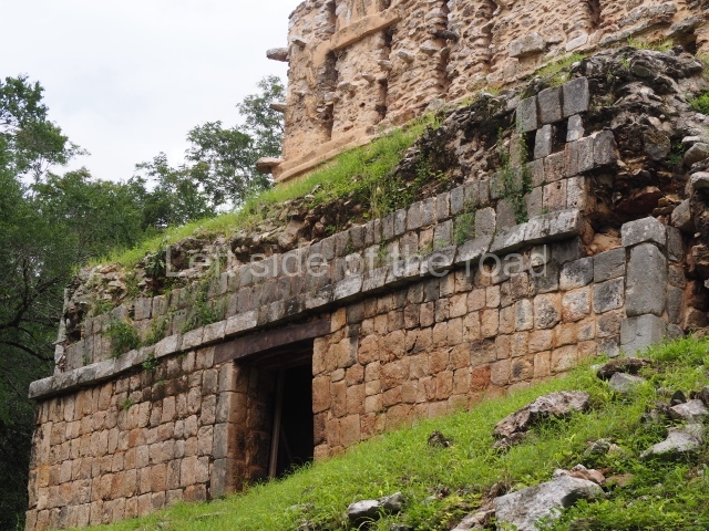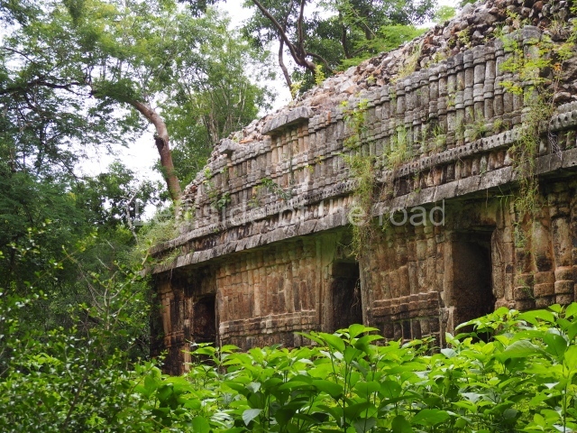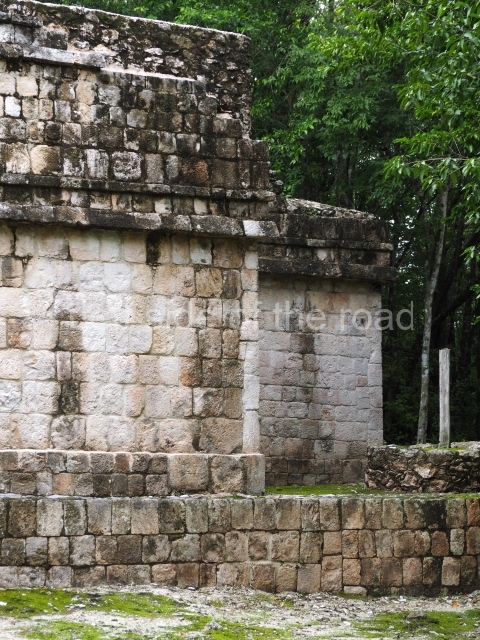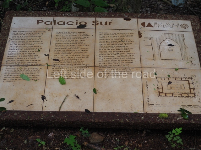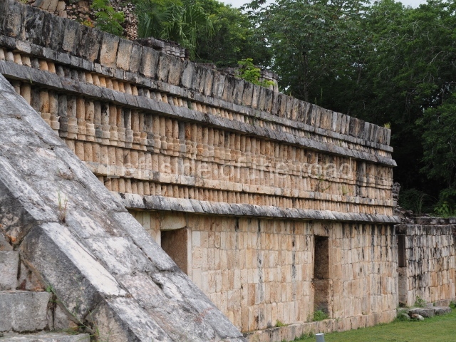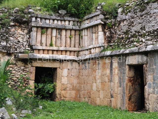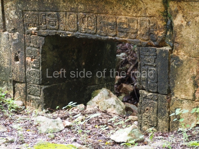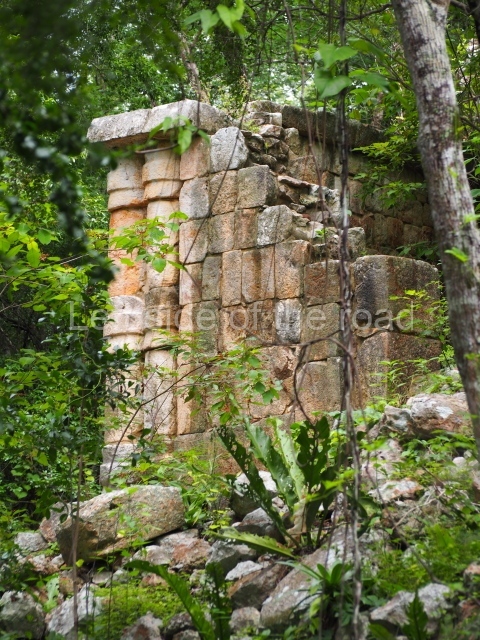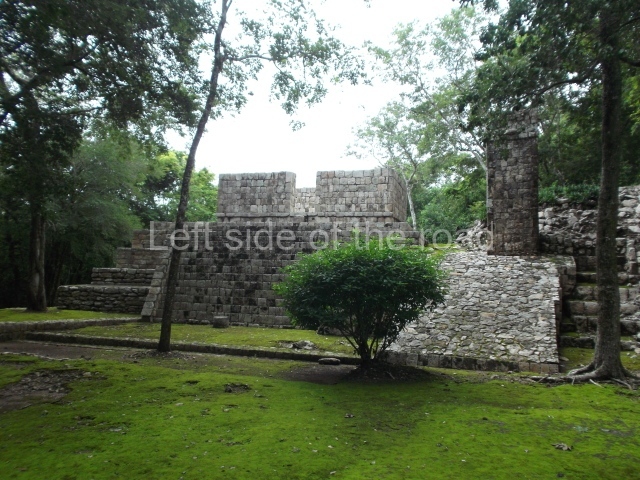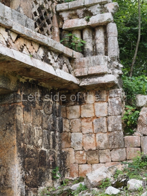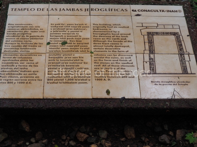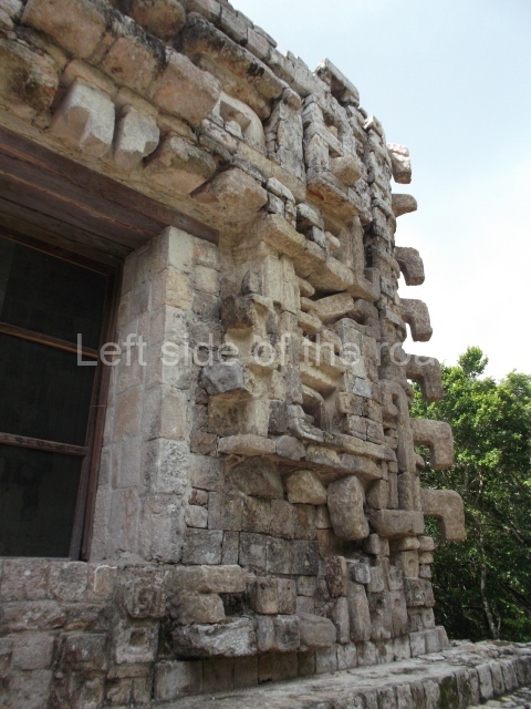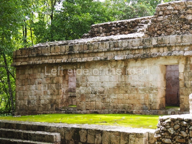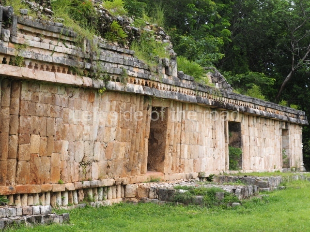 This forms part of a small quadrangle. It is poorly preserved, with only three of its original rooms still visible today. The north room displays an interesting doorway from the architectural point of view and relatively rare in the Maya area: a band of 30 glyphs, many fairly well preserved, decorates the jambstone and lintel of the main entrance to the building.