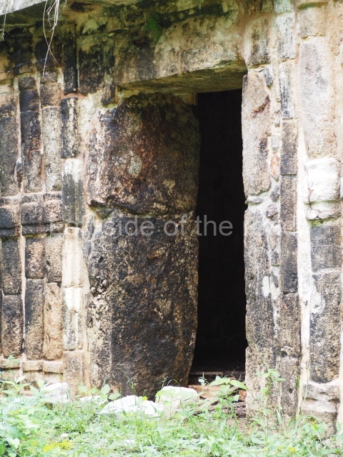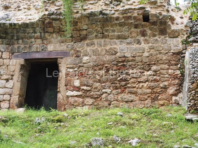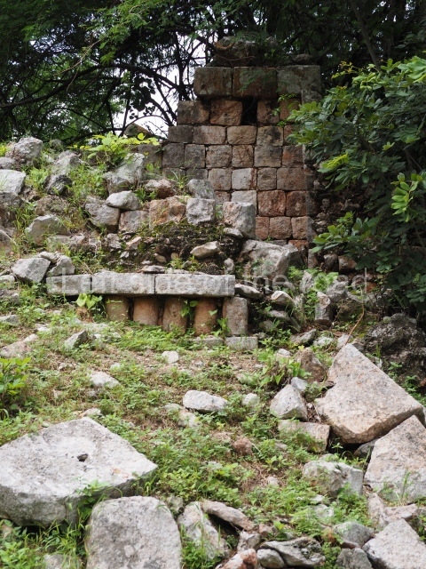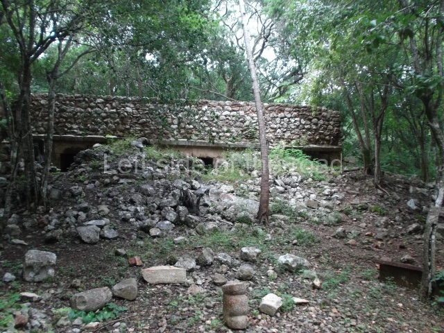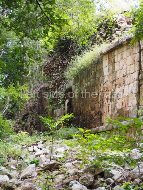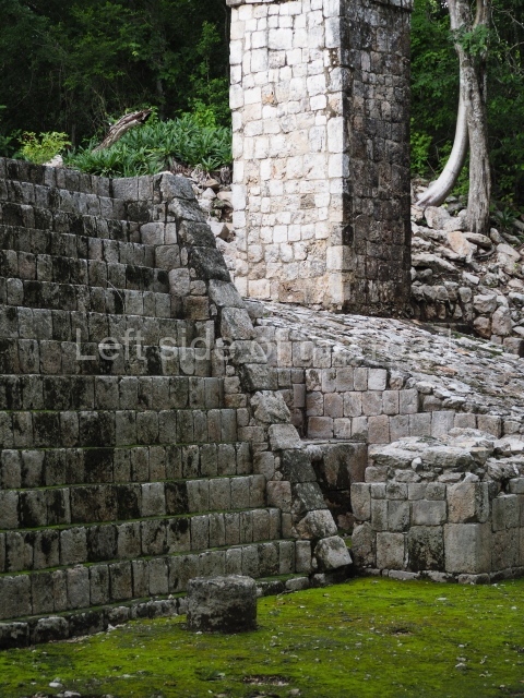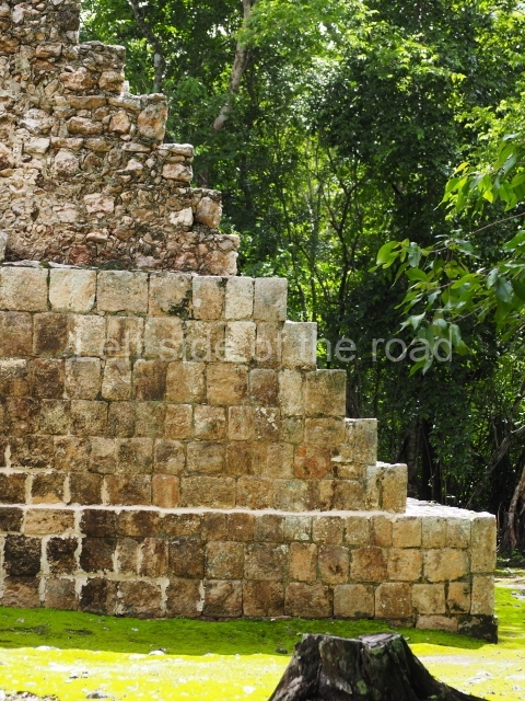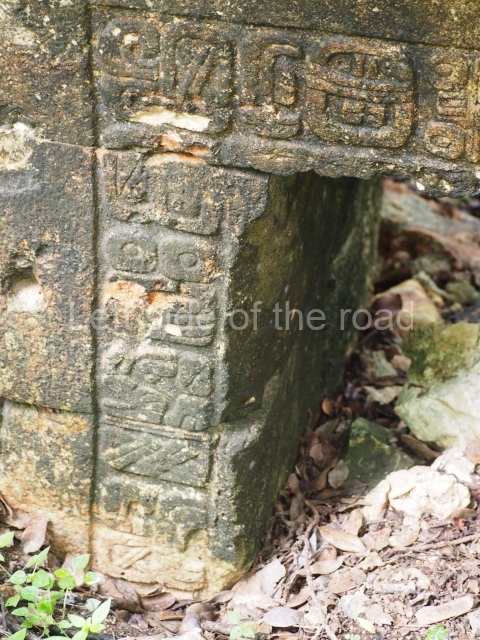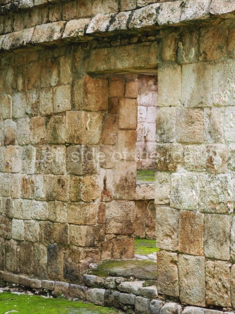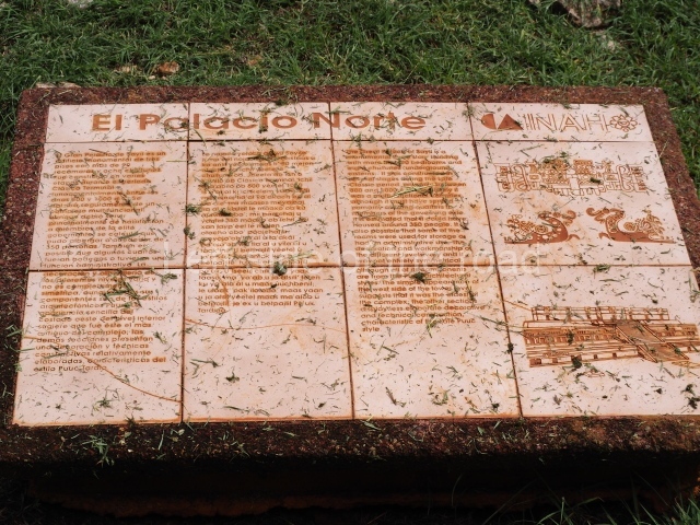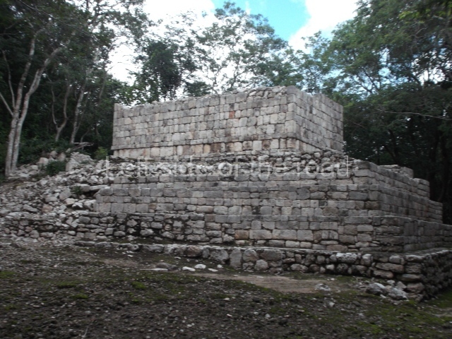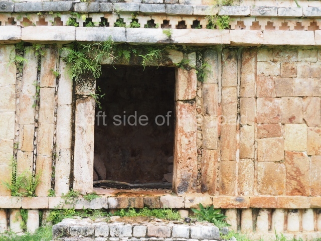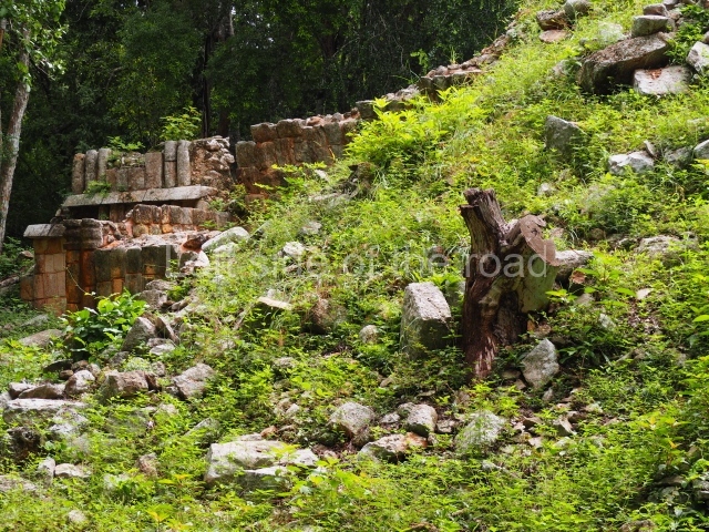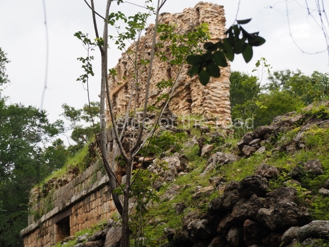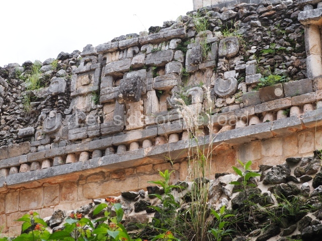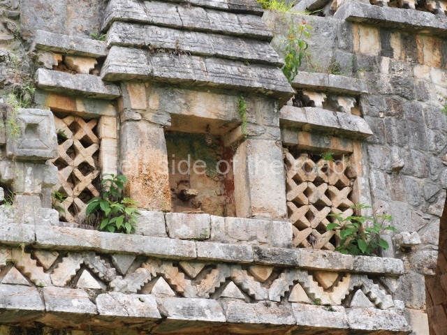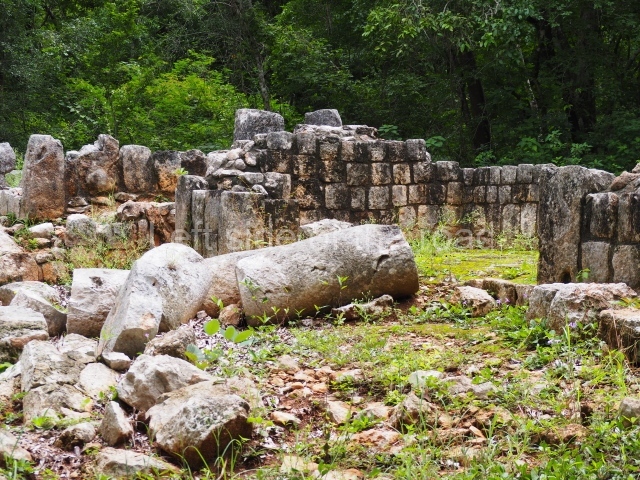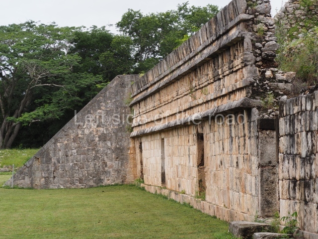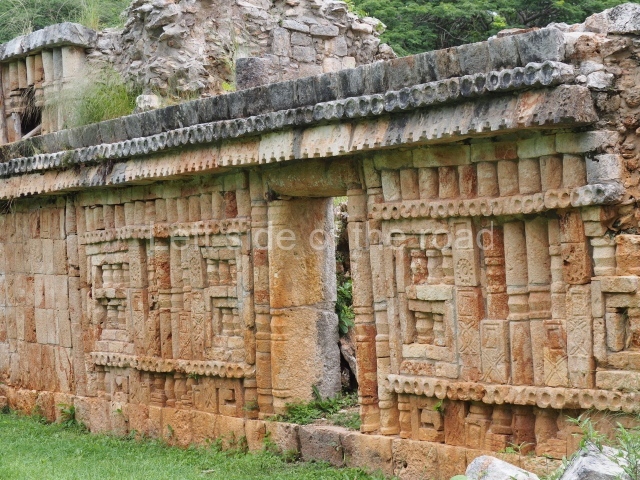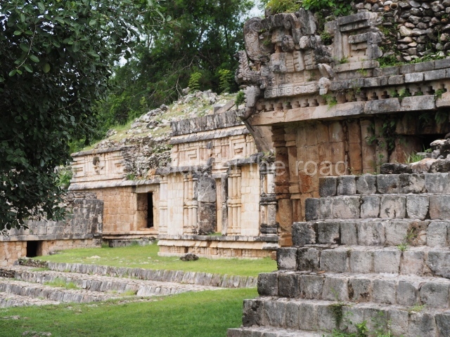 This forms part of a small quadrangle. It is poorly preserved, with only three of its original rooms still visible today. The north room displays an interesting doorway from the architectural point of view and relatively rare in the Maya area: a band of 30 glyphs, many fairly well preserved, decorates the jambstone and lintel of the main entrance to the building.