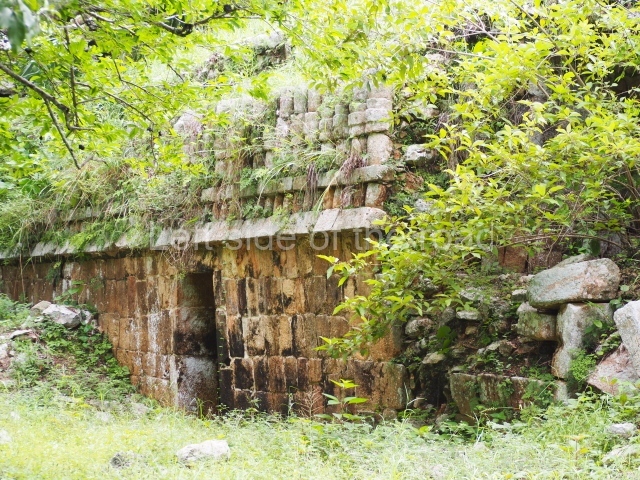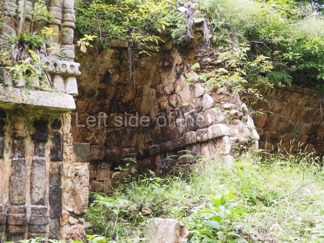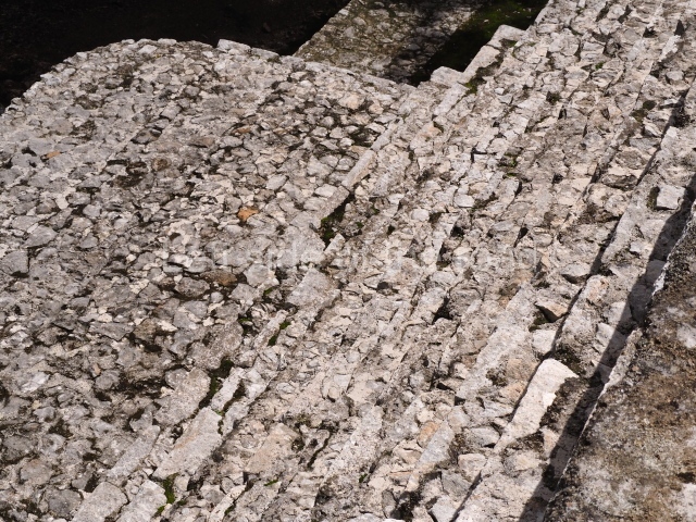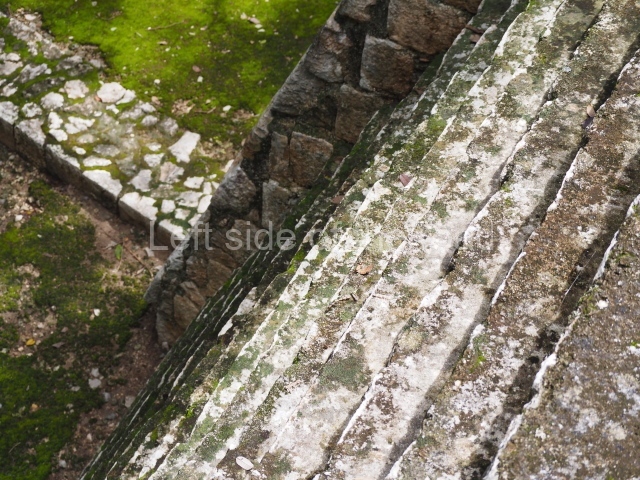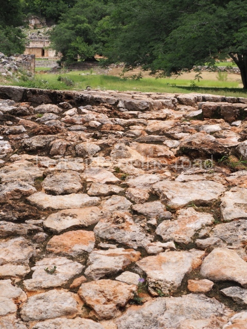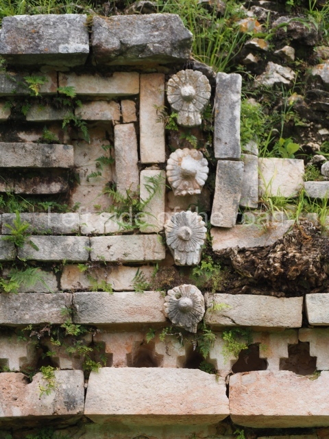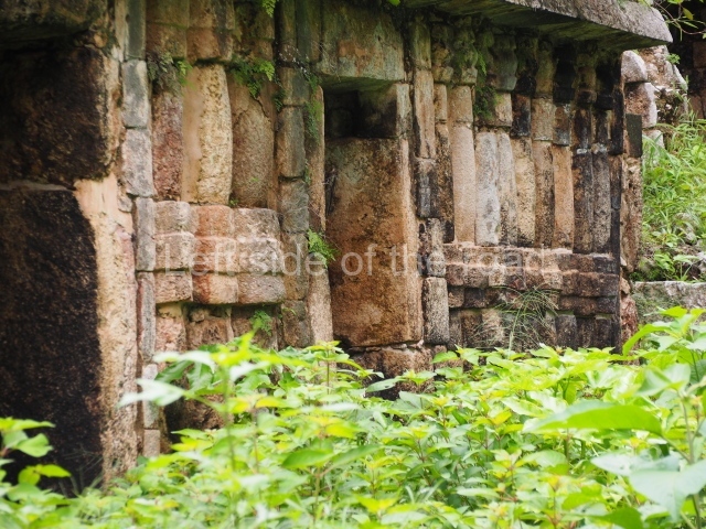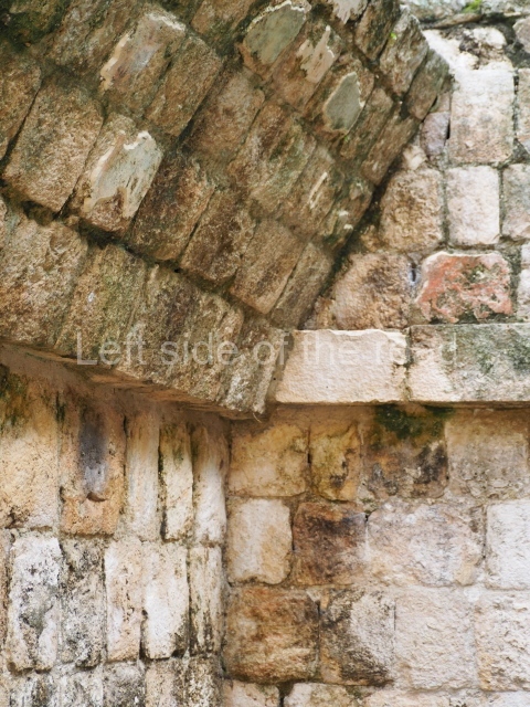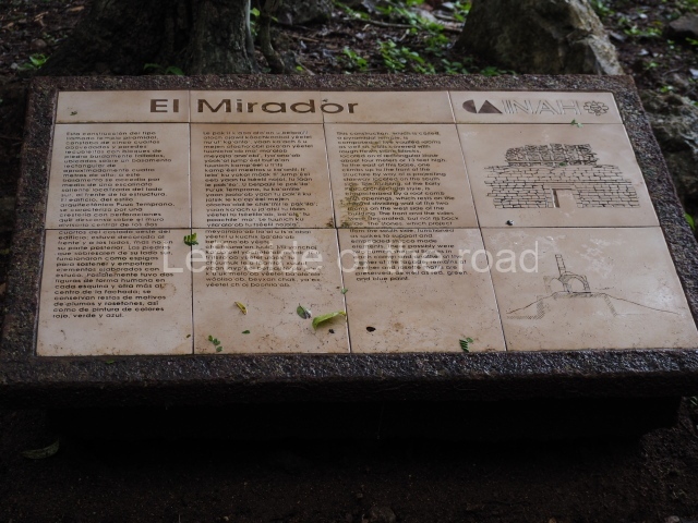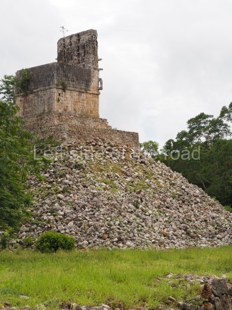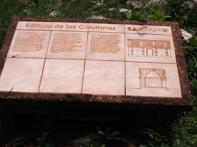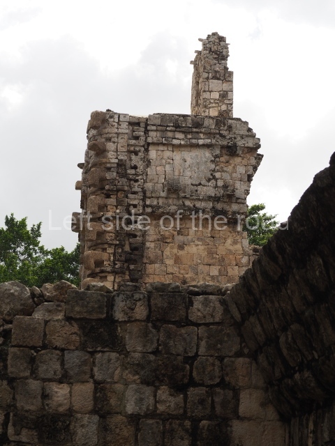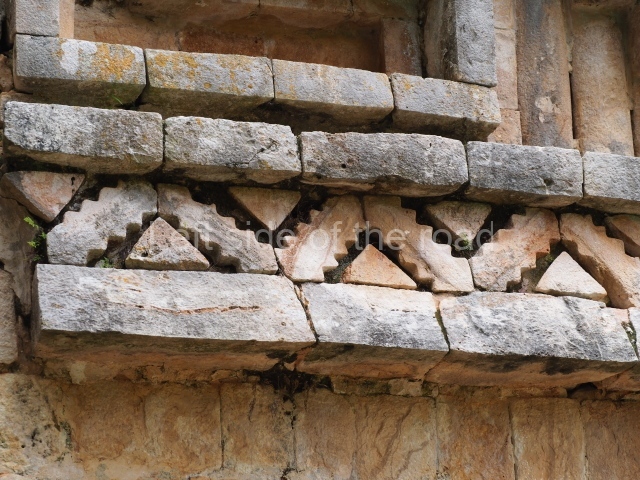 Situated next to the south end of the causeway and built on a stepped platform, the reconstructed building we see today is defined by its high corbel vault and an equally high roof comb. Nowadays, the facade is bare and simple, with medial moulding that must have contrasted with the roof comb which still displays traces of butts for stucco anthropomorphic figures. The building originally contained five rooms, of which only one has survived.