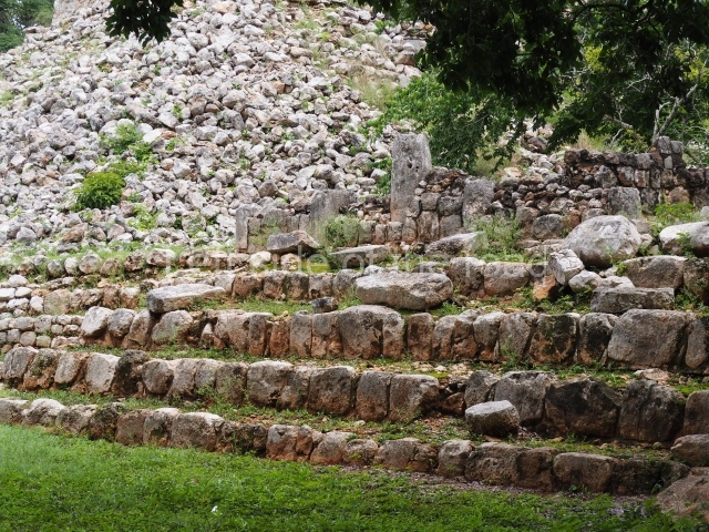 At its peak, Sayil may well have comprised four architectural groups of varying sizes and importance: one to the north, another two along the causeway running north-south through the site, and the largest to the south-east. The main settlement is concentrated in the bottom of the valley, where five main groups are arranged in an approximate north-south axis along the main causeway. The location of the settlements not directly associated with the causeway is determined by the presence of limestone rocks, which were required for the construction of chultunes. The site continues, practically in all four directions, to the foot of the hills that form the valley