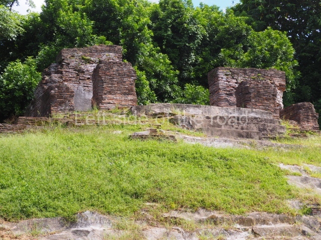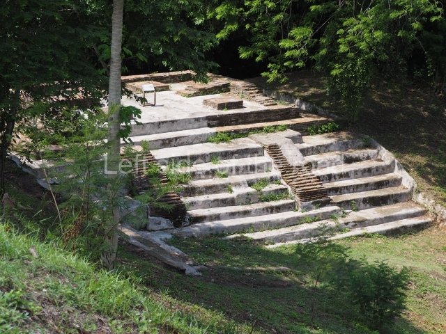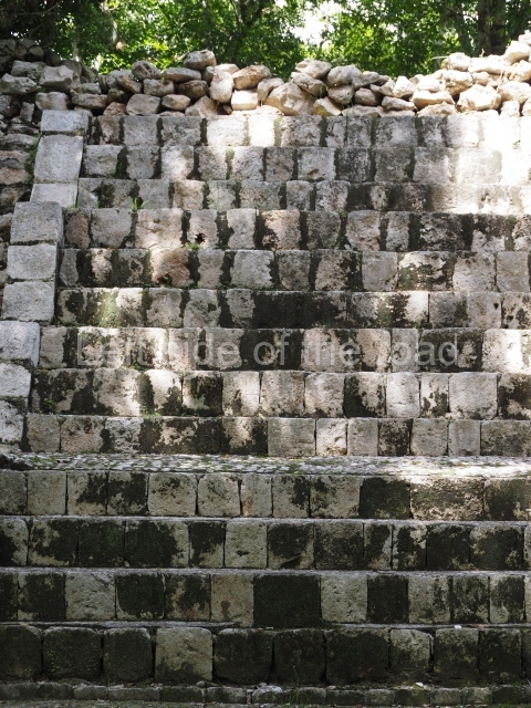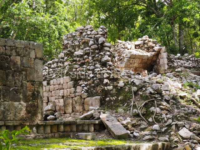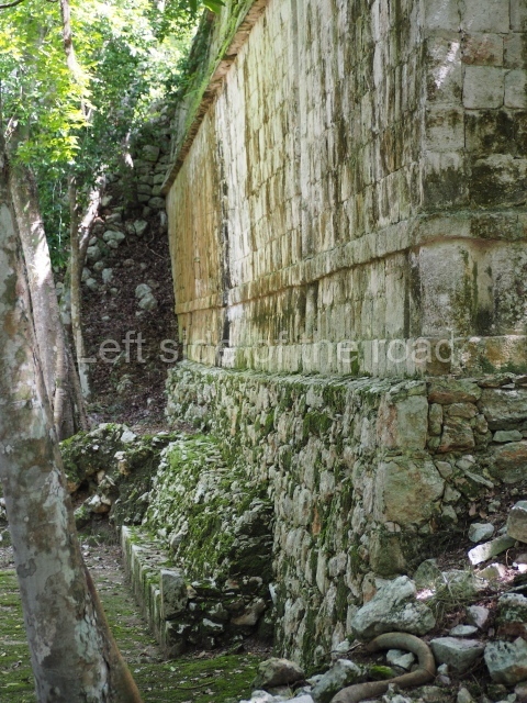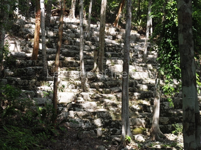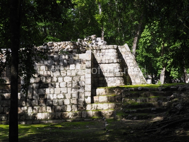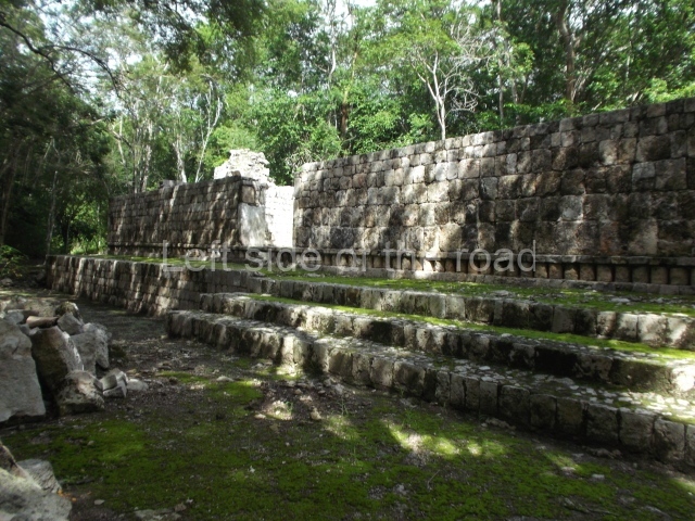 The South Plaza at Santa Rosa Xtampak is bounded to the north by an enormous pyramid platform, nowadays known as Star Hill, at whose base it is still possible see some of the megalithic steps that facilitated its access. These elements correspond to the earliest occupation of the settlement, like the Petenstyle stairways with giant blocks reported at other regional capitals of the peninsula, such as Edzna, Dzehkabtun, Izamal and Coba. The top of Star Hill is the highest point of the core area of Santa Rosa Xtampak. However, archaeological explorations have not yet been conducted in this part of the site and it is still covered by vegetation.