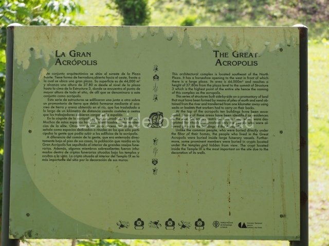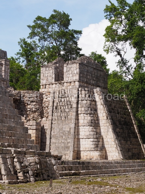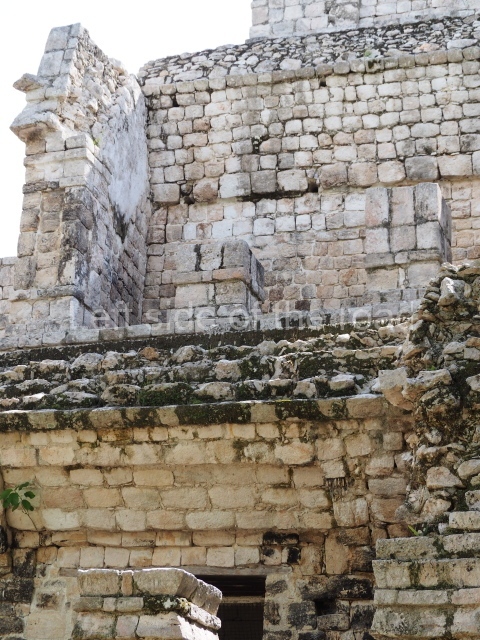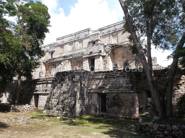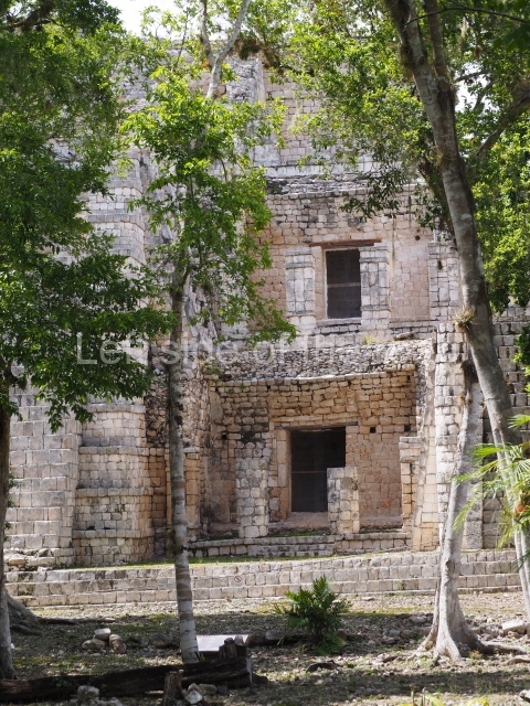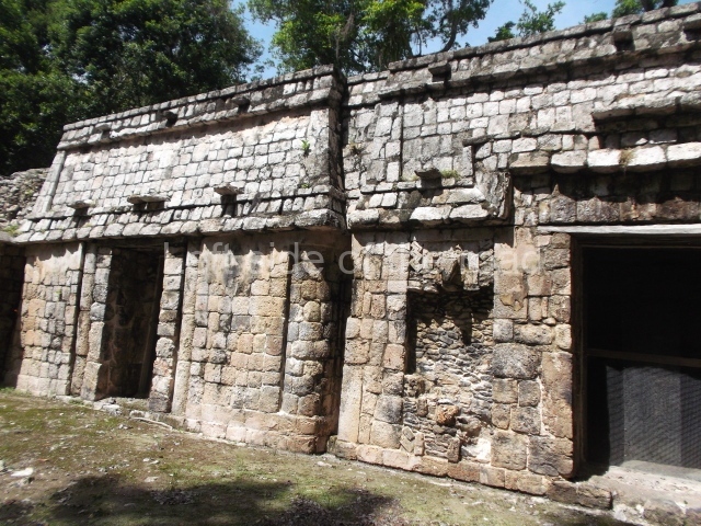 This building comprises 42 rooms on three levels. Approximately 50 m long, 30 m wide and 30 m high, it boasts a wide stairway on the east facade as well as additional entrances on the west side and two interior staircases to facilitate circulation between the rooms. These internal communication features are rare in Maya architecture and their corbel vaults turning on oblique plains have been studied by several experts. The generous proportions of the rooms, as well as their interior features and layout, suggest that most of them were residential quarters for rulers and their courtiers. The smaller rooms situated on levels 1 and 3 may have provided storage for the accessories used by the elite: large headdresses, ceremonial costumes, incense burners, sceptres, parasols, etc.