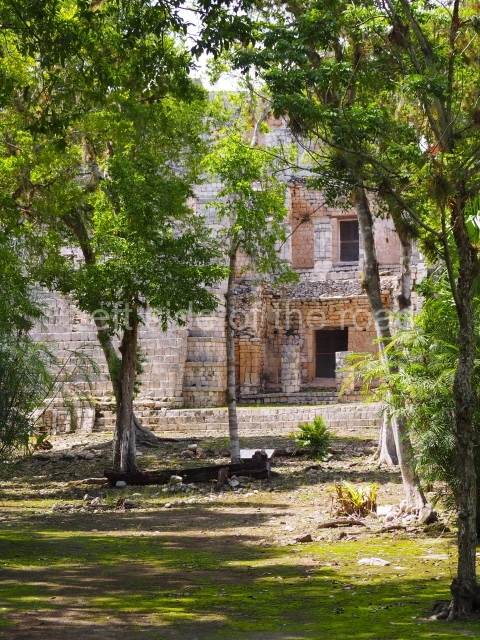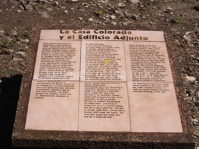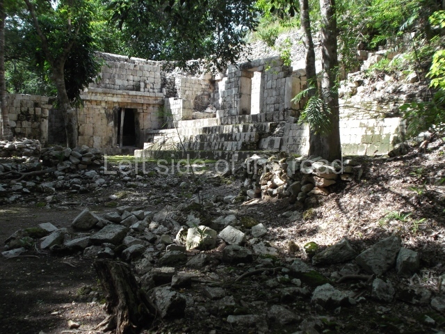 Thus christened by Maler, the building is characterised by a typical Chenes facade covered entirely by a fantastic giant mask. There are auxiliary rooms on both sides of the mask, but the most interesting aspect is the rear section, where the Maya builders created the image of a centipede. These arthropods (chapat, in Yucatec Maya) with their poisonous claws were thought to inhabit the underworld and were associated with the gods of the underworld. Situated next to this building is the Red House composed of three rooms, although only the rear wall is still standing today. The name is a reference to the traces of paint that could still be seen in the 19th century. A path leads from the west of this plaza to another group of buildings.