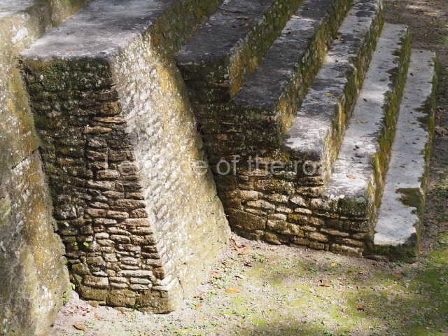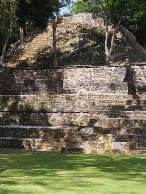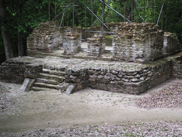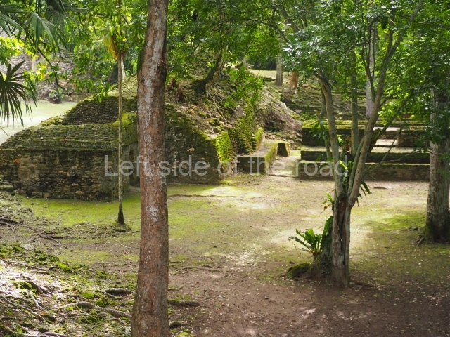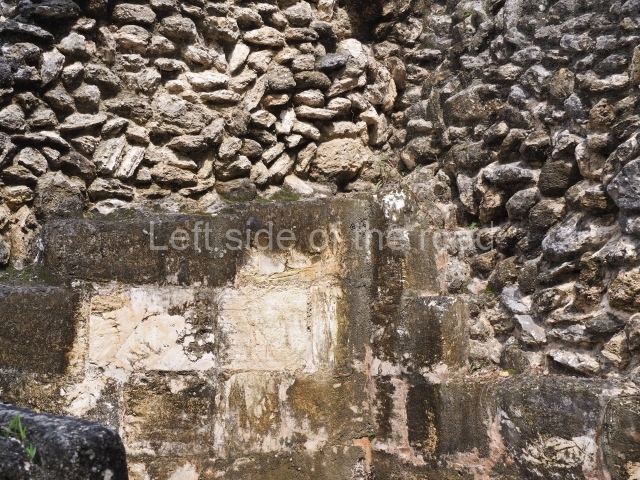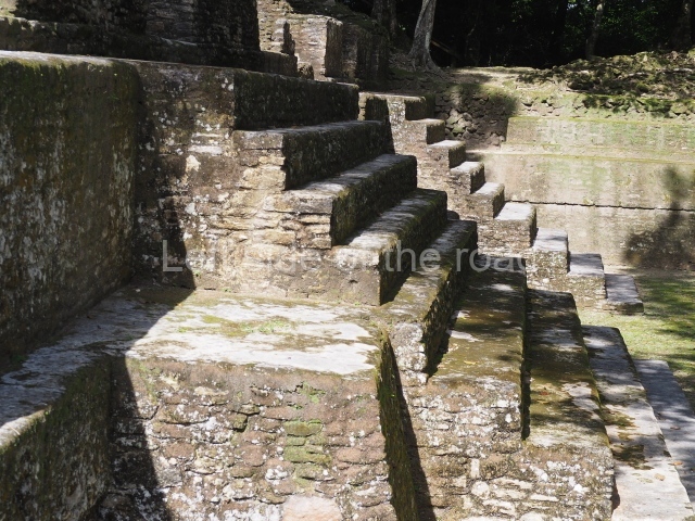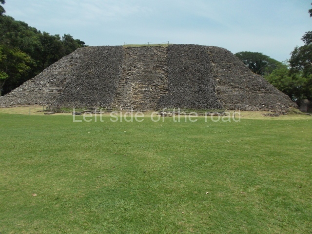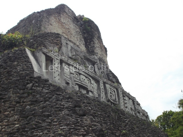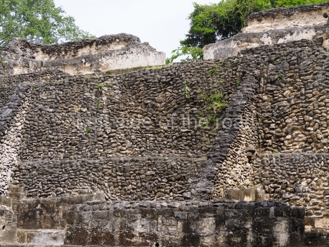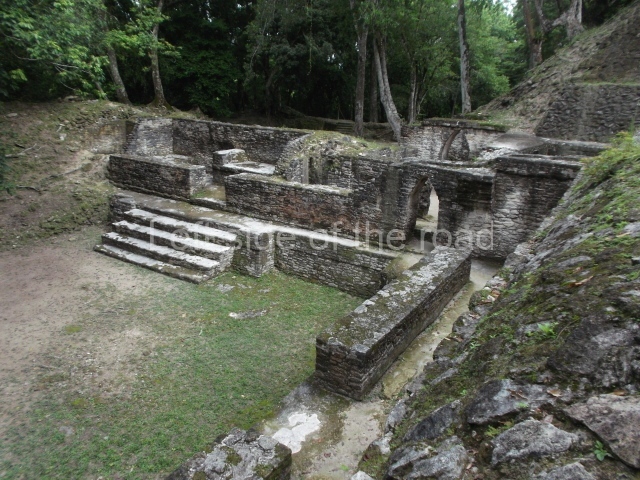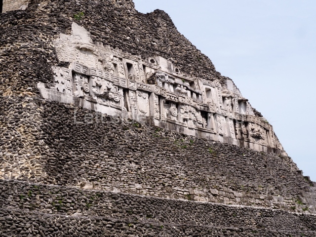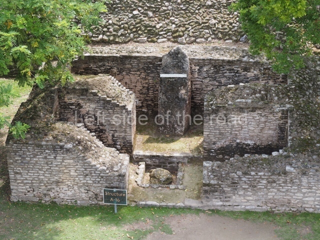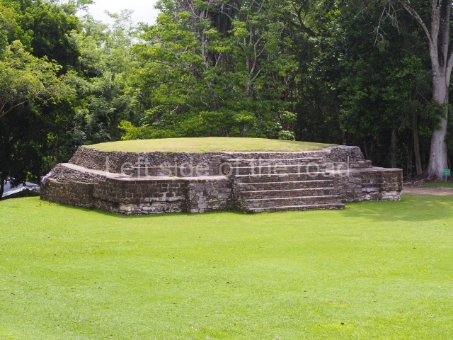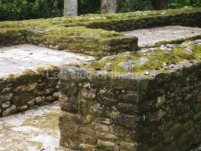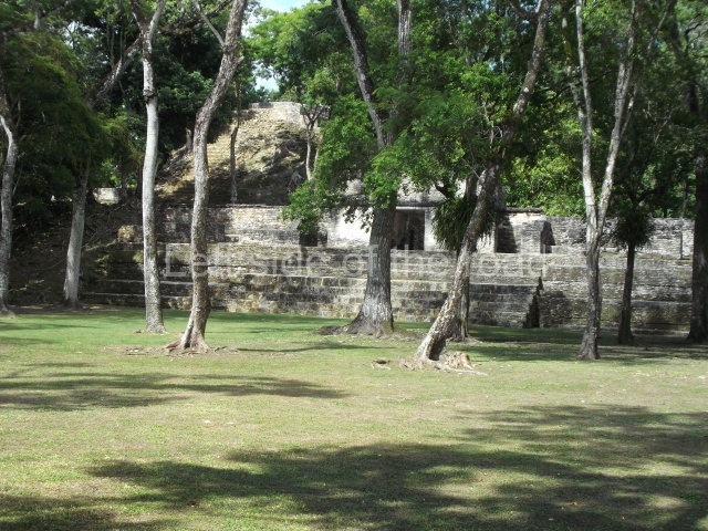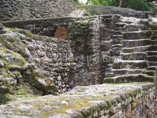 Access is from the north-east and the first area entered is Plaza B, the largest on the site. Structures B1, B2 and B3 seal the west side of the plaza. According to Joyce Kelly, this group formed an E-Group complex or astronomical marker of the solstices and equinoxes, like the one at Uaxactun in Guatemala. A royal burial from the Late Classic (AD 600 to 800) was discovered at Structure B1 with grave goods containing objects made from jade, carved shell and bone, ceramic vessels and a jade and shell mosaic belt mask. On the south side of the plaza lies structure B4, an elongated platform with a stairway at the front and mask remains on the balustrades. The explorations conducted by Joseph Ball and Jaime Awe have revealed a long occupational sequence, commencing in 1200 BC, which means that the site was one of the earliest settlements in the region. The reconstructed facade we see today dates from between 600 and 300 BC. The south-west corner of Plaza B leads to Plaza F, which has various low platforms that have not yet been restored. On the west side of this small plaza a double-flight stairway leads to the residential Groups E and D in the south-central area of the site. This section has been partially restored and contains excellent examples of Maya vaults and rooms with elegant benches for resting, not unlike those depicted in polychrome Maya vases.