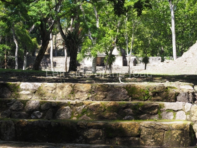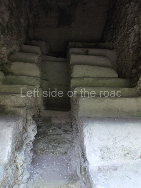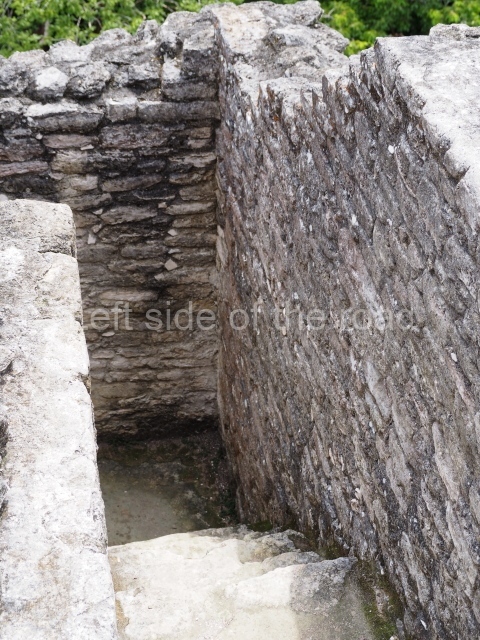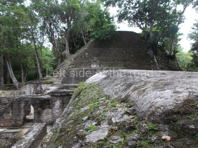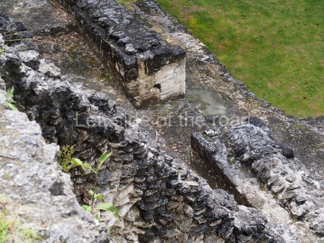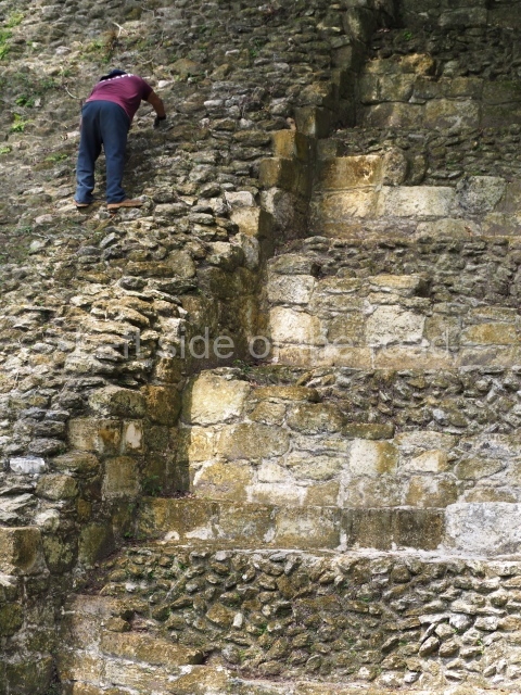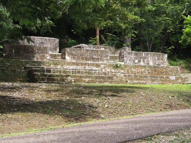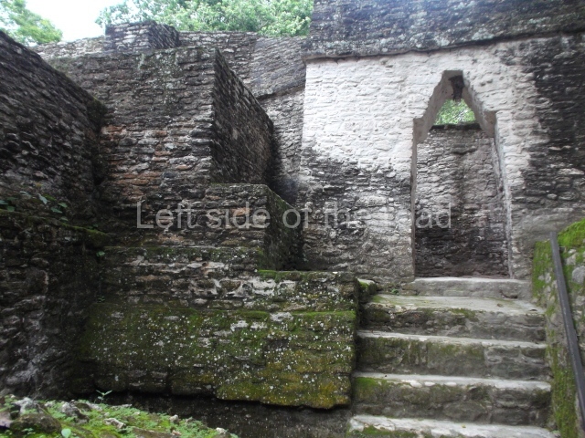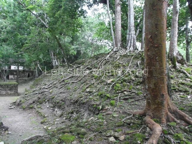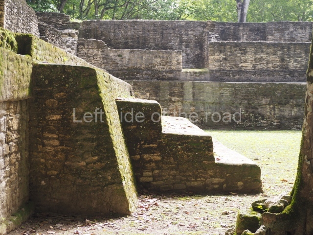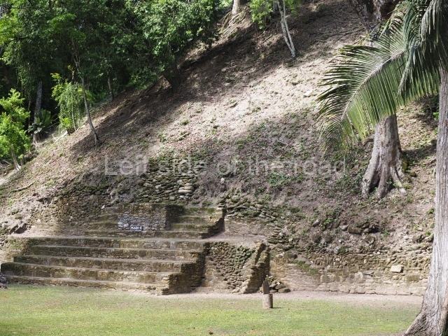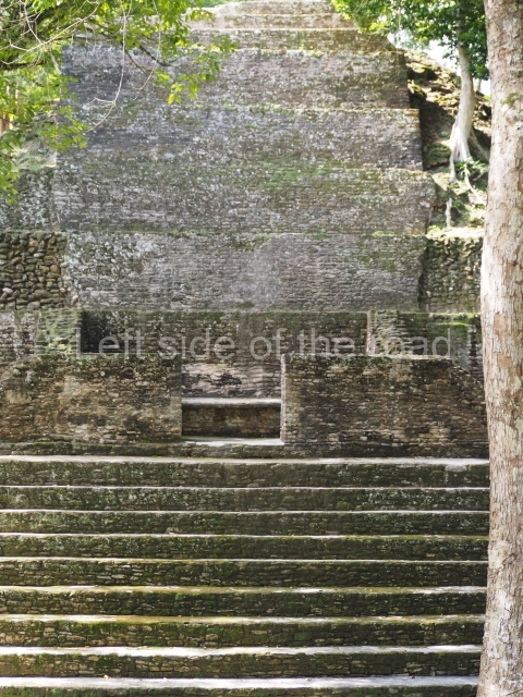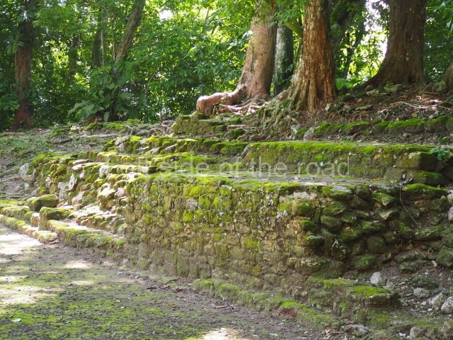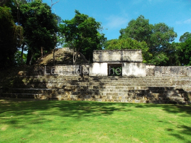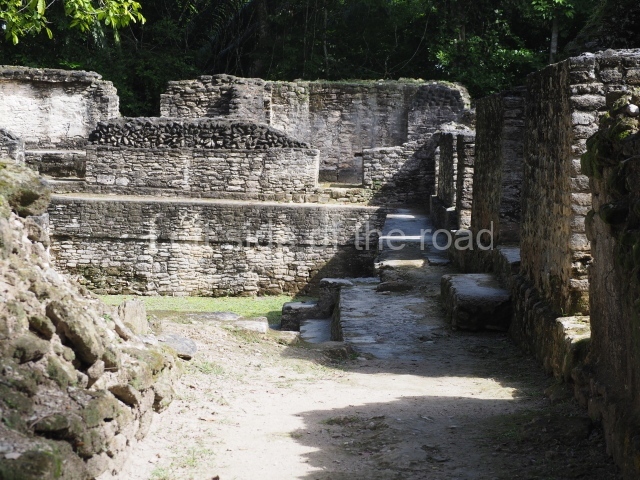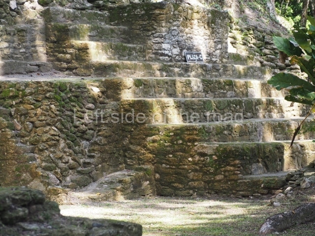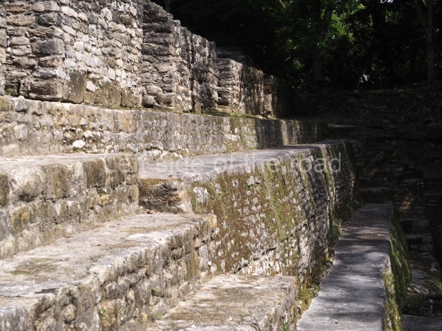Access is from the north-east and the first area entered is Plaza B, the largest on the site. Structures B1, B2 and B3 seal the west side of the plaza. According to Joyce Kelly, this group formed an E-Group complex or astronomical marker of the solstices and equinoxes, like the one at Uaxactun in Guatemala. A royal burial from the Late Classic (AD 600 to 800) was discovered at Structure B1 with grave goods containing objects made from jade, carved shell and bone, ceramic vessels and a jade and shell mosaic belt mask. On the south side of the plaza lies structure B4, an elongated platform with a stairway at the front and mask remains on the balustrades. The explorations conducted by Joseph Ball and Jaime Awe have revealed a long occupational sequence, commencing in 1200 BC, which means that the site was one of the earliest settlements in the region. The reconstructed facade we see today dates from between 600 and 300 BC. The south-west corner of Plaza B leads to Plaza F, which has various low platforms that have not yet been restored. On the west side of this small plaza a double-flight stairway leads to the residential Groups E and D in the south-central area of the site. This section has been partially restored and contains excellent examples of Maya vaults and rooms with elegant benches for resting, not unlike those depicted in polychrome Maya vases.