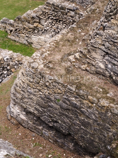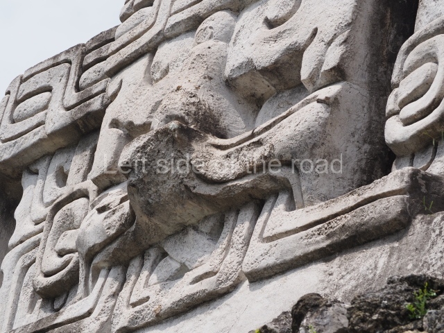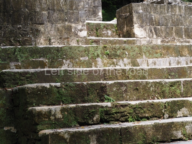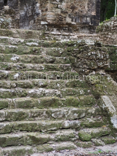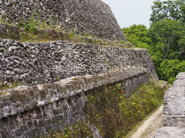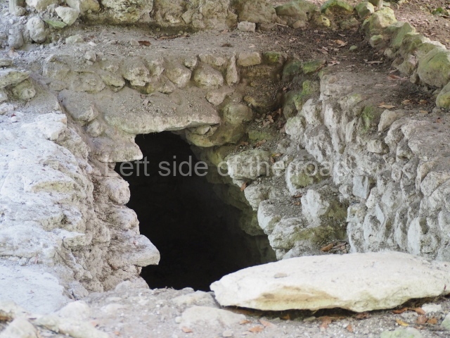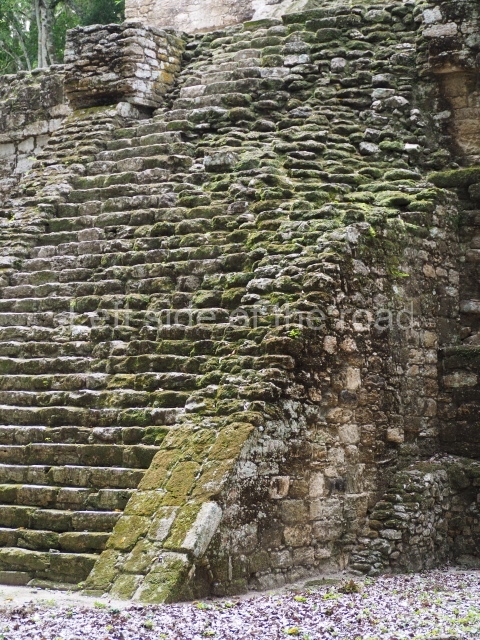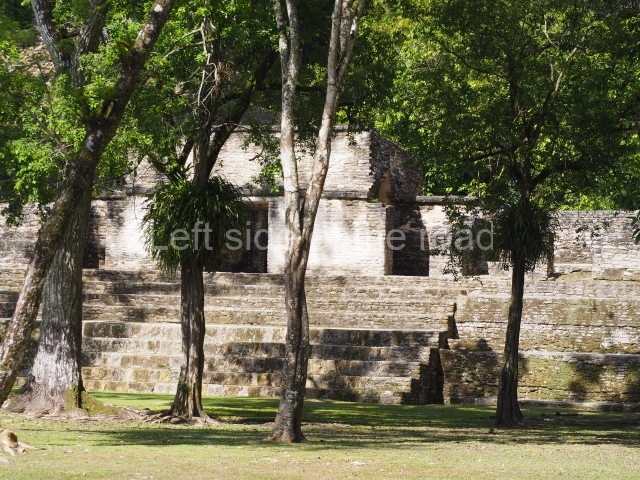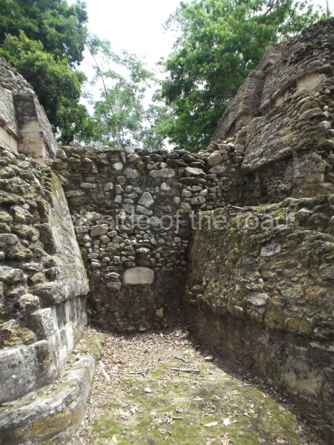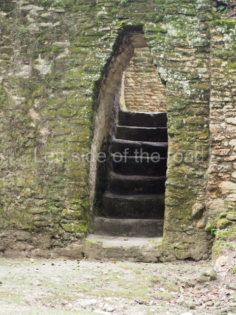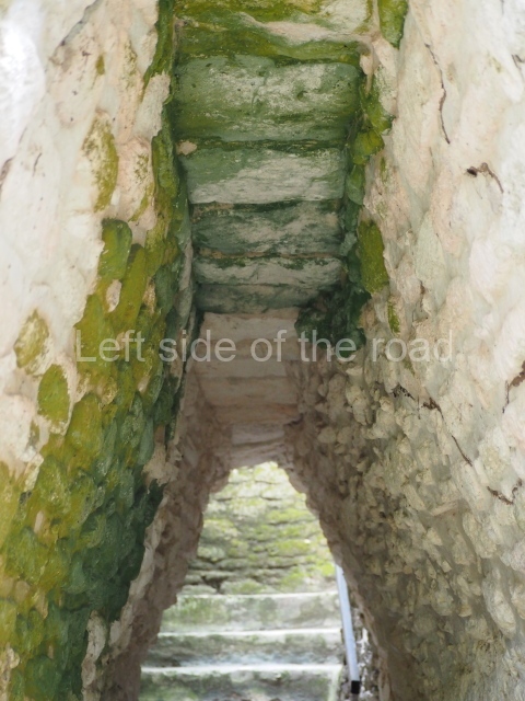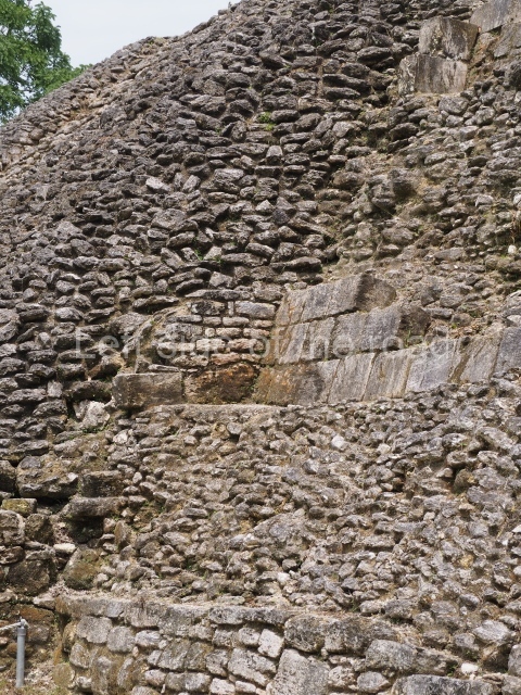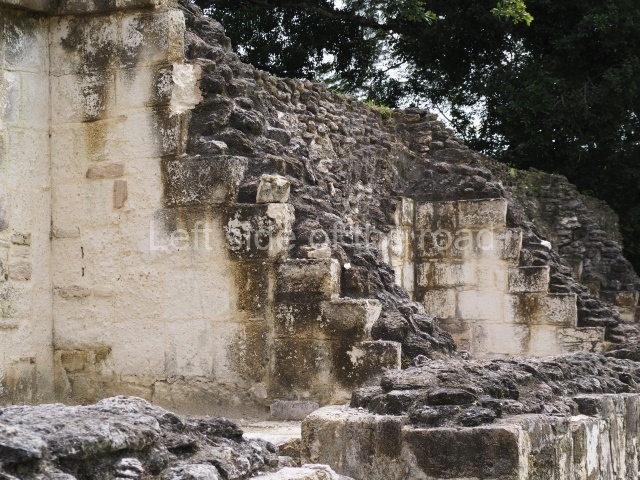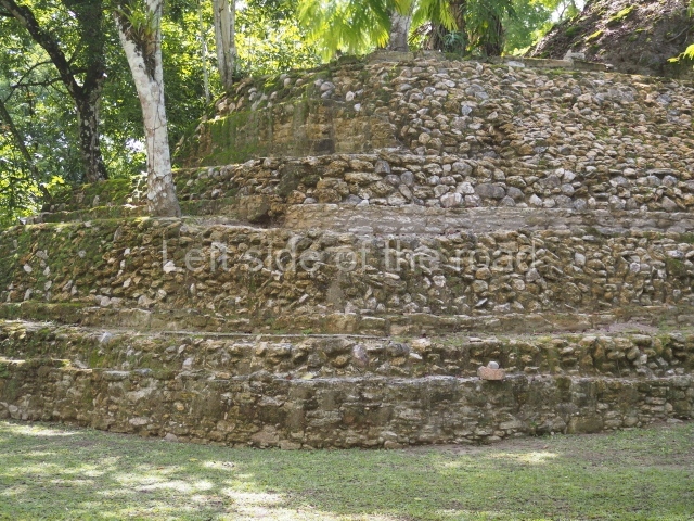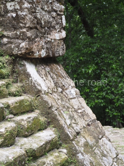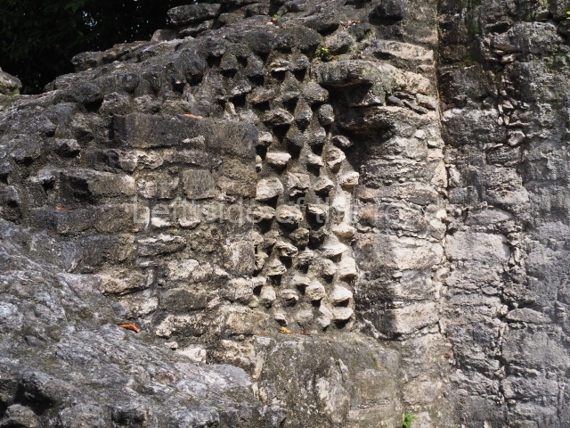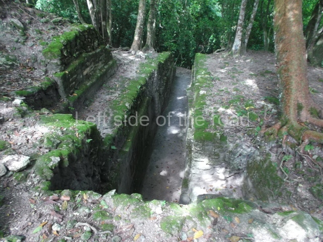 Access is from the north-east and the first area entered is Plaza B, the largest on the site. Structures B1, B2 and B3 seal the west side of the plaza. According to Joyce Kelly, this group formed an E-Group complex or astronomical marker of the solstices and equinoxes, like the one at Uaxactun in Guatemala. A royal burial from the Late Classic (AD 600 to 800) was discovered at Structure B1 with grave goods containing objects made from jade, carved shell and bone, ceramic vessels and a jade and shell mosaic belt mask. On the south side of the plaza lies structure B4, an elongated platform with a stairway at the front and mask remains on the balustrades. The explorations conducted by Joseph Ball and Jaime Awe have revealed a long occupational sequence, commencing in 1200 BC, which means that the site was one of the earliest settlements in the region. The reconstructed facade we see today dates from between 600 and 300 BC. The south-west corner of Plaza B leads to Plaza F, which has various low platforms that have not yet been restored. On the west side of this small plaza a double-flight stairway leads to the residential Groups E and D in the south-central area of the site. This section has been partially restored and contains excellent examples of Maya vaults and rooms with elegant benches for resting, not unlike those depicted in polychrome Maya vases.