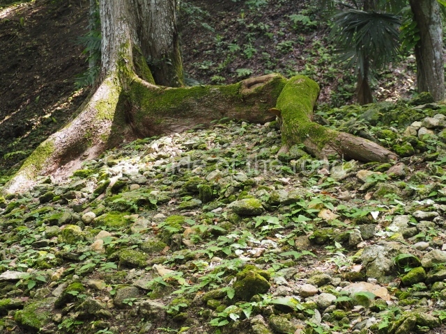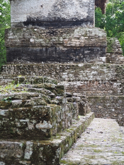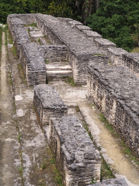 The west side of Plaza B leads to Plaza A, passing through Structure A2, which fulfils the function of a portal. This elongated structure with several rooms and restricted access was called the Audiencia, probably having been used for administrative and civic functions as well as serving as a hall where the ruling class would meet or receive important emissaries. Plaza A displays an elegant layout and an exclusive palatial complex. This section, which is connected at the rear to Plazas E and D, provides visitors with an idea of the layout of architectural spaces for the Maya elite, Structure A1 is the tallest construction at Cahal Pech, standing 24 m high. Visitors can climb to the top of it for a view of the surrounding elite buildings. The largest construction at the site is from the Middle Classic (AD 500), but its sub-structures were built in the Late Preclassic (400 BC-AD 250). On the west side of Plaza A a passage leads to the rear area containing a draining system and various terraces sloping down to the west ball court, which has not yet been excavated. This section displays a considerable difference in ground level, indicating Cahal Pech’s strategic and defence position. Various roads have been discovered near the site leading to outlying residential groups. The site is thought to have been occupied from 1200 BC to AD 900, when it was vacated. A possible reason for its vacation was the growth of other powerful cities in the area, such as Buenavista, Baking Pot, Pacbitun and Xunantunich.