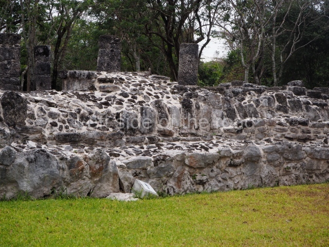 To the north of Structure XIX a path leads to the remains of an ancient wall, just over 6 m high when viewed from the outside and approximately 2 m thick. There is no evidence to suggest that it was a defensive structure as it does not surround the core of the site. It may well have acted as a boundary for the city’s ceremonial precinct, to control access from the northern sections.