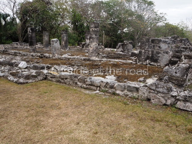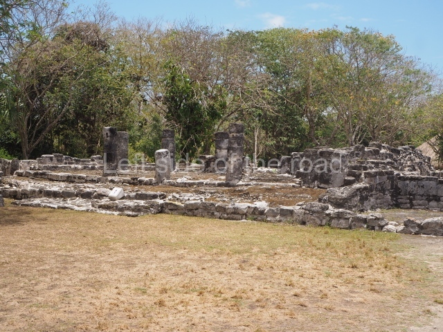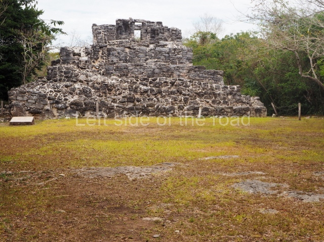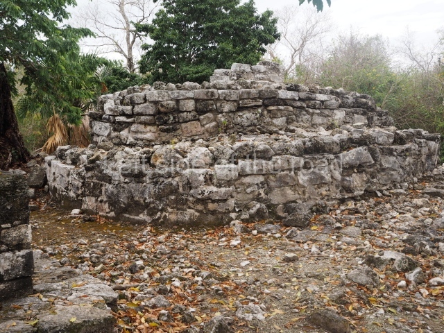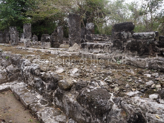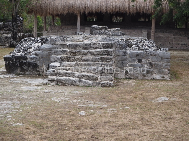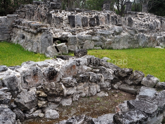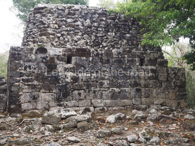 This is visible before you get to the Ball Court and is situated to the north of the latter structure. It takes the form of a pyramid platform, 43 m long and just over 8 m high. Its four tiers are fronted by a broad stairway. At the top is a two-storey building corresponding to two different construction periods. The associated stelae and altars indicate that it was built in the 8th century AD. To the west is a gallery with seven entrances formed by pilasters, erected before the platform, which now partly covers it.