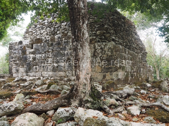 This is situated opposite the previous structure, facing west of the latter. The platform measures 100 m long (north-south) and 80 m wide, and behind it is a large courtyard with various rooms. A palatial complex with restricted access, it has only been partly excavated and to date only eight stelae have been associated with it. Some of the dates inscribed on these go back to the end of the 7th century and beginning of the 8th century AD.