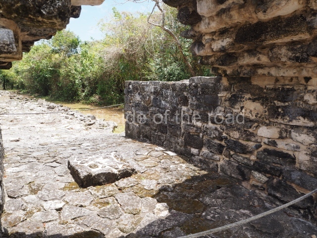 The north-east and north-west sections of the Great Acropolis offer an overview of the housing occupied by the families closest to the rulers. The unit known as the House of the Owner of the Sky (Utsial Caan) has a small open space at the centre, approximately 75×50 m, with an underground tank for rain water (chultun); its only access is via two narrow entrances on the south and west sides (the east side was open to facilitate the flow of people). The space comprises 13 rooms, many of them with benches, arranged around three interior courtyards. The entire complex was surrounded by a wall some 4 m high. A little further to the west is the residential unit known as the House of the 6th Ahau (Wac Ahau Nah), a similar but smaller complex, thus called because of the discovery of a capstone inscribed with the date 6 Ahau. This unit has a 65 sq m courtyard surrounded by eight large rooms and a smaller one, possibly a storeroom, each with its own entrance. The rooms have a surface area of between 10 and 15 sq m, mainly taken up by benches. Their occupants may have obtained water from an open tank or the aguada situated some 300 m from the Great Acropolis.