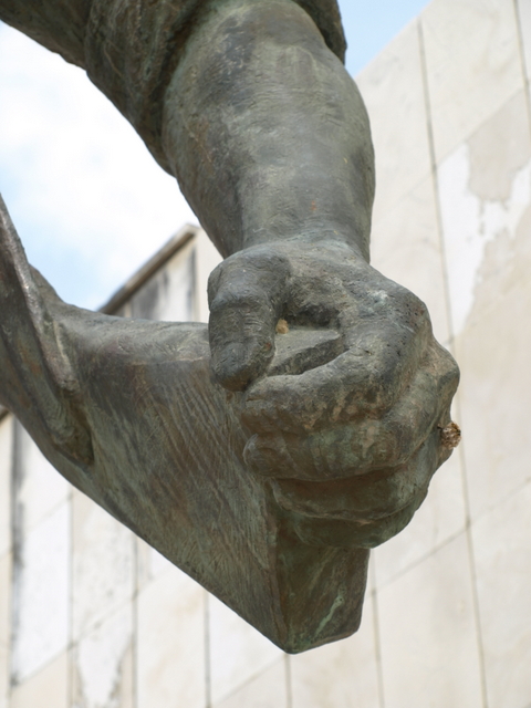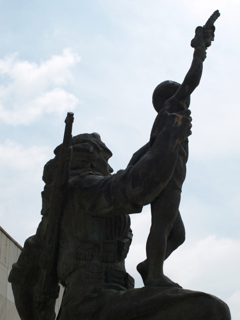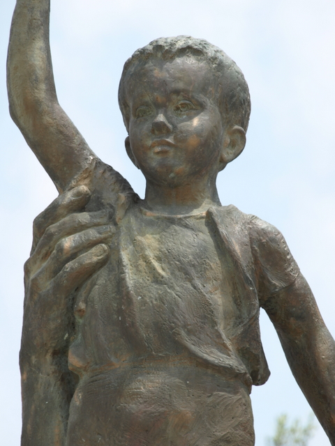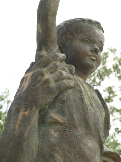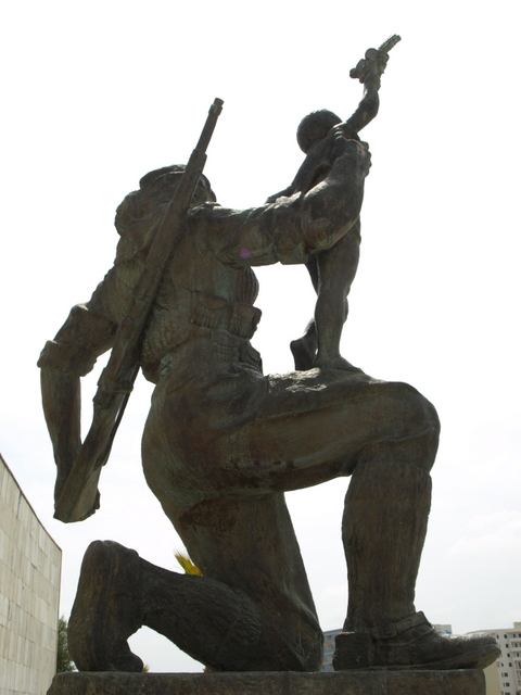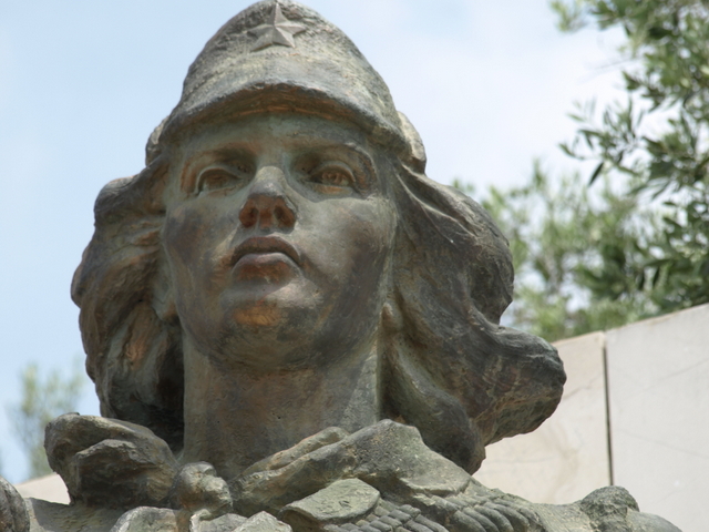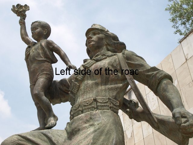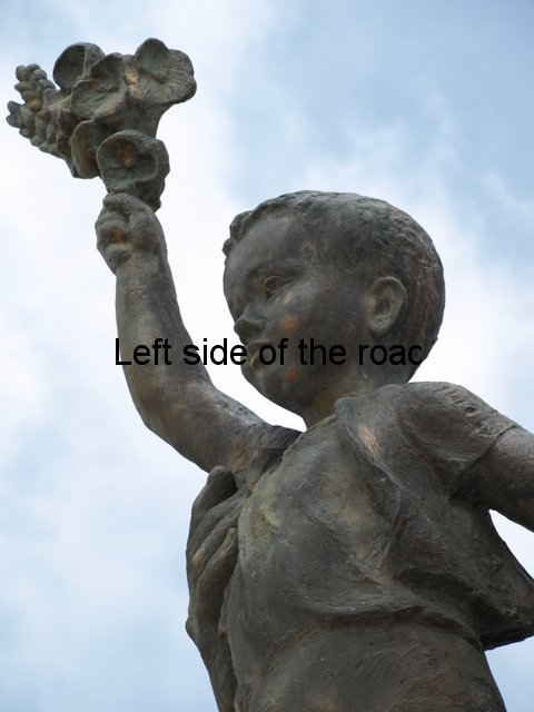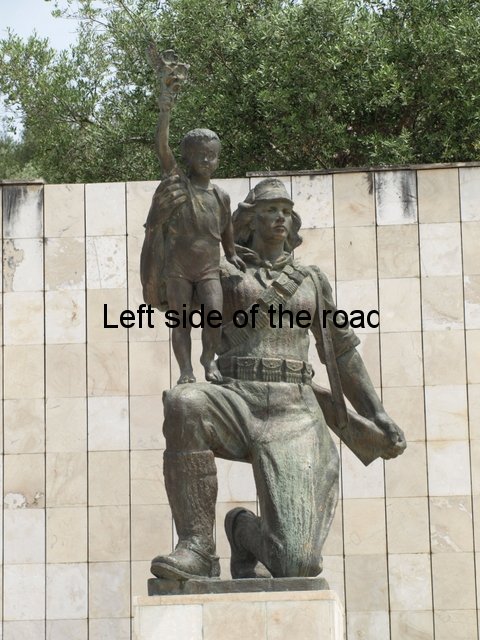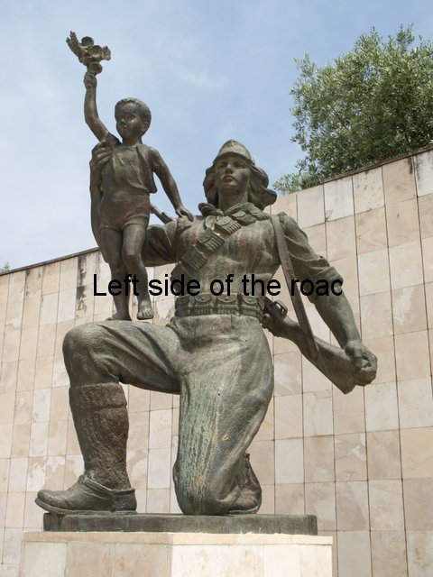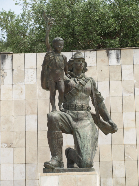 This image of offering protection for the boy at the end of the war is reinforced by the link that he makes between his rifle and the young boy. The war against Fascism was won by arms and the war against poverty cannot be won unless there is the willingness to resort to arms. As Mao said: ‘Political power grows out of the barrel of a gun’ and without political power nothing can be done to end the reasons for poverty. This idea is represented in a number of other sculptures throughout the country, including the beautiful sculpture of the Partisan and Child (this time a young girl) in Borovë and in the impressive image of the female Partisan at the Lushnje Martyrs’ Cemetery.