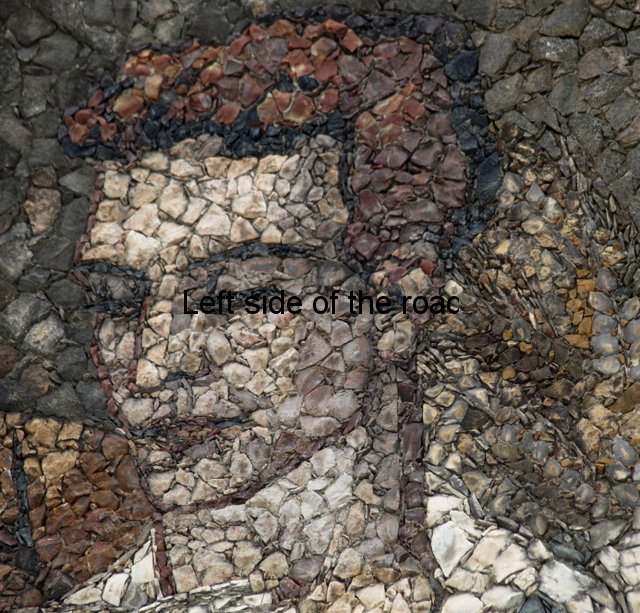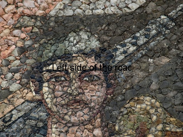 If you look at the eagle you can see that the artist has made the full use of the materials to hand and although the image has been created using, in the main, black stones white ones have been chosen for the talons and there are a random number of them on the chest of the birds, suggesting the light reflecting from the healthy plumage of the animal. That’s a nice and imaginative touch from the sculptor.