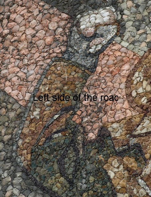 What this vandalism also shows is the quality of the work that was employed in the making of the mosaic. Presumably using modern metal tools the vandal gave up his/her destructive endeavours after only managing to obliterate two letters.