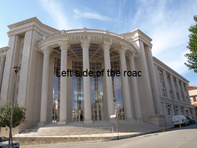 So what has replaced the derelict factory? A monstrosity. This is the Albanian College Durrës, a huge building with neoclassical pretensions and totally out of place in this part of town. This is a theme that’s being repeated throughout the country. Private educational institutes claiming their credentials with the construction of enormous buildings – quantity surpassing quality.