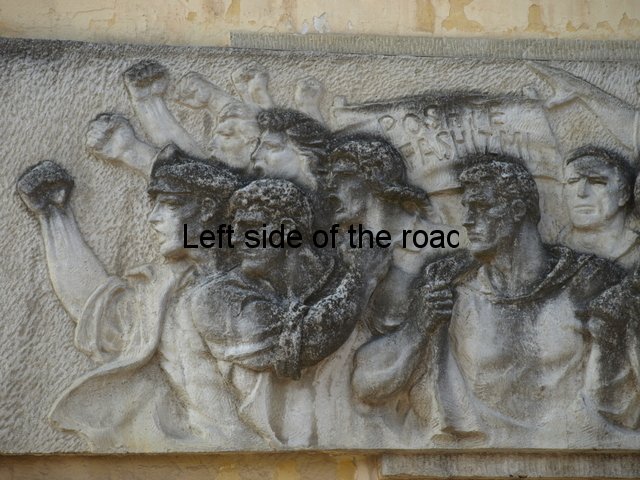 This was probably placed on the building quite soon after National Liberation on 29th November 1944. It would have been during Albania’s Cultural Revolution, starting in the mid-60s, that plans for the bas-relief would have been formulated.