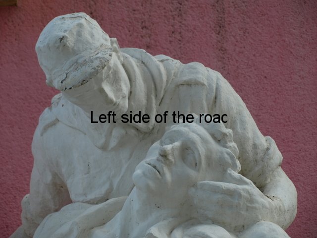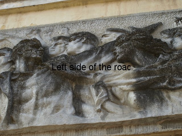 I’ve tried to work out why these two are even in the picture. Every other person depicted is interacting either with the Fascists or each other, these two, on the other hand, seem no more than bystanders, not involved with the events unfolding. As there was so limited a space for the bas-relief I can’t work out why time, effort and space has been spent on images that add nothing to the story. I’ll accept that in such demonstrations not everyone is fully engaged but such distance is transitory. On a work of art such as this one their inactivity is recorded, literally, in stone.