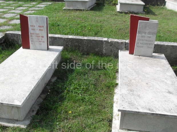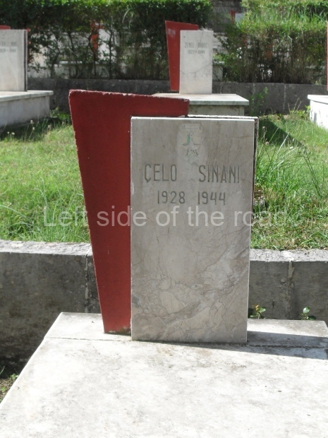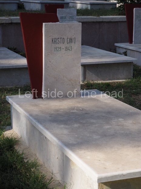 I took the opportunity of a quiet moment to have another visit to the cemetery to try to get an idea of what the Anti-Fascist National Liberation war was all about. I had missed them in the past but was slightly surprised to see that (although there are many young people remembered on the tombs) there were two children of 14 (Sulo Hysi (1929-1943) and Kristo Cavo (1929-1943)) and one 16 year-old (Celo Sinani (1928-1944)) who also fell in the struggle for liberation.
