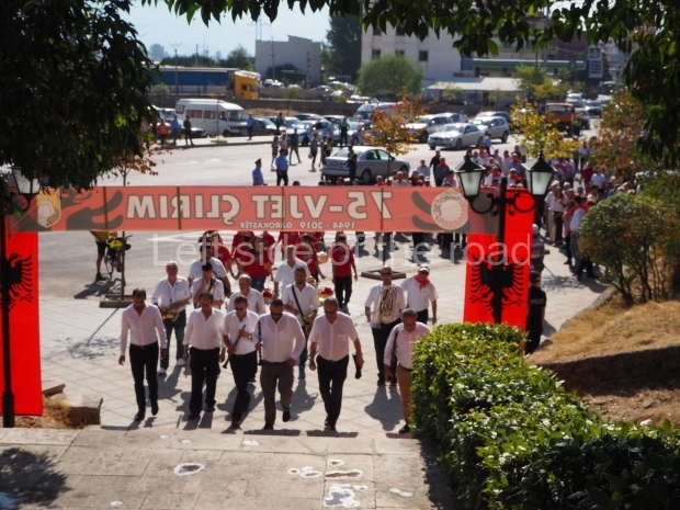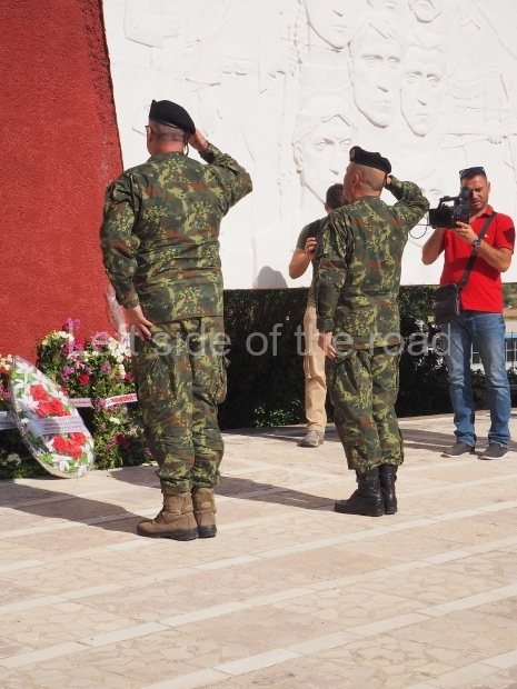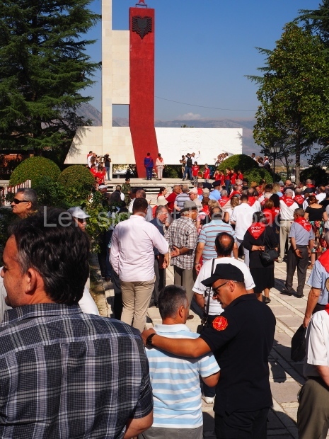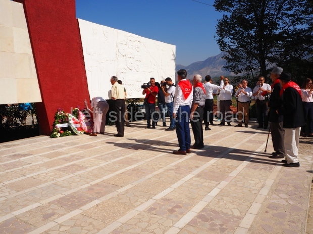 One small event that caused a local stir was the presence of an older man who help a portrait of Comrade Enver Hoxha, in a glass frame, high above his head in front of the images of the eight heroes/heroines of Gjirokaster depicted on the lapidar. He drew the attention of the media present as well as a number of onlookers. Though a single incident it was good to see that the spirit of the past still exists within the city.