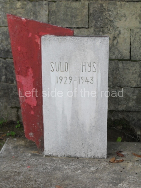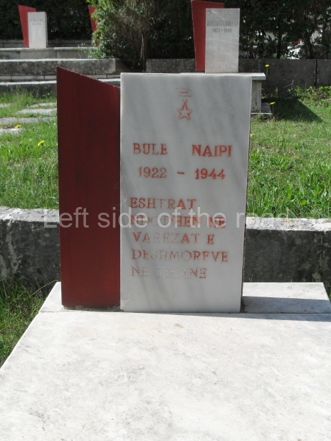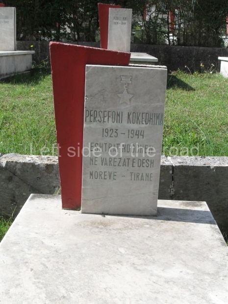 I have been having difficulty in tracking down someone in Gjirokaster who might know exactly who is represented amongst the eight heads which are depicted on the lapidar. In the cemetery there are a few tombstones which carry a red star as well as the name of the individual. These will be officially Heroes of the People. Two of those, Bule Naipi (1922-1944) and Persefoni Koadhima (1923-1944) are the so-called ‘Hanged Women of Gjirokaster’ and are the young female faces on the lapidar.