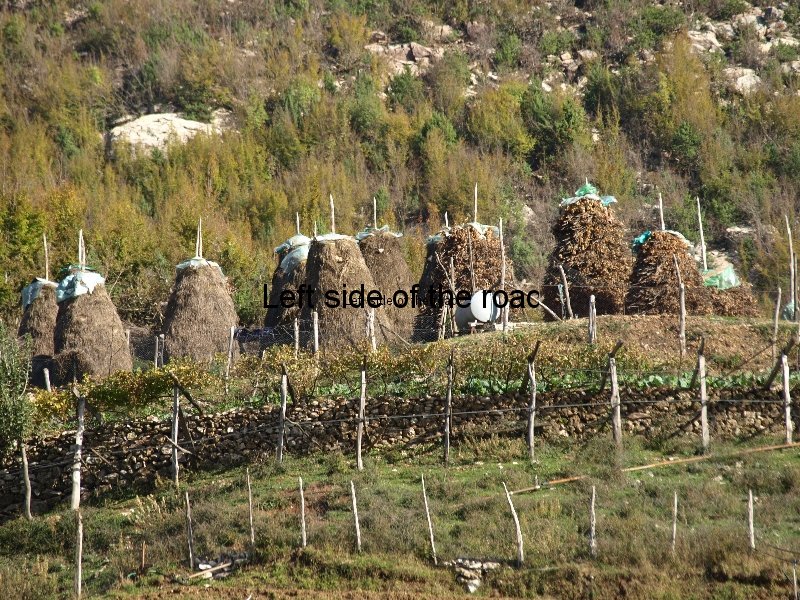 On the hill surrounding this plateau are the graves/monuments to 900 partisans. There’s a laurel leaf on all of them and the Communists have the addition of a star above that to show their political allegiance.