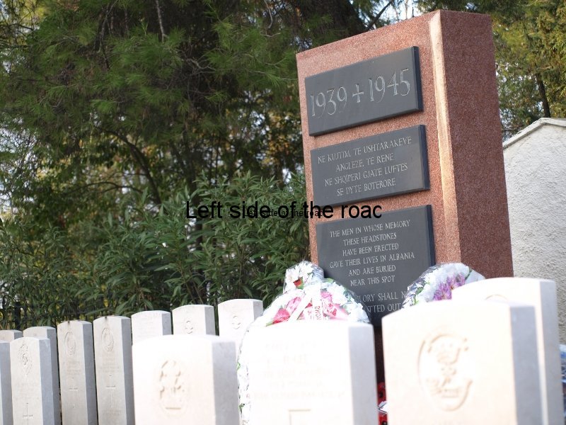 Notice the little holes above the grey slate with the Albanian writing? (If you are wondering the Albanian translates into: ‘In memory of those in the English military who fell in Albania during the Second World War.’)
