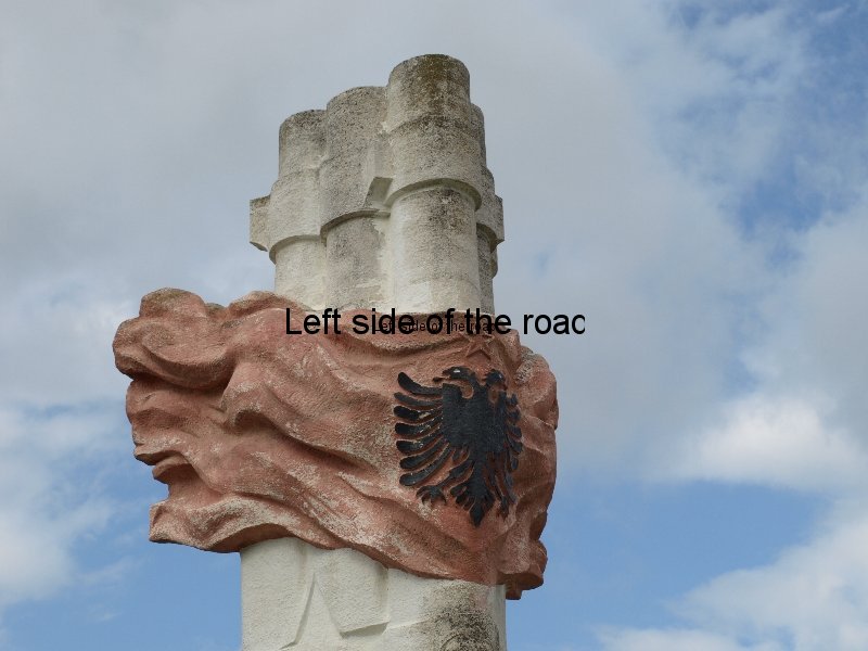 It’s a modest grave, two in from the path, of red marble and the only inscription being his name and dates (1908-1985), surmounted by a small star. At the head there are two pillars which support a black metal, double-headed eagle. There are always flowers on the stone, a mixture of real and artificial.