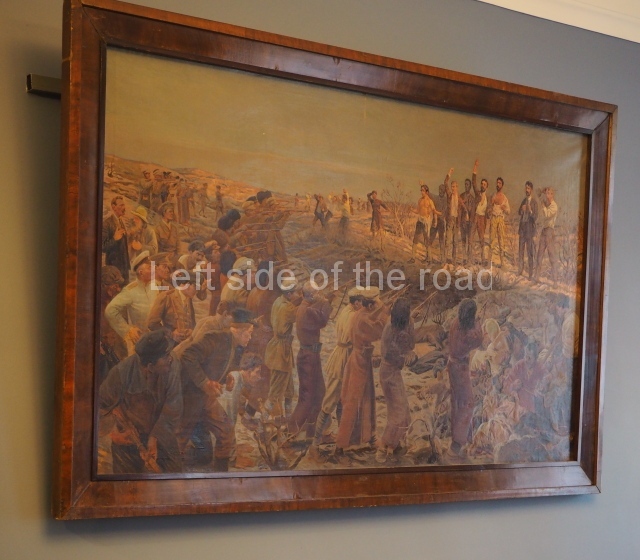 The decoration at the top of the pillars on either side of the entrances from the passageway to the platforms are images that represent some of the ‘pillars’ of the Soviet economy, here in 1955. Those aspects of the economy are; oil, electricity, heavy engineering and mining. As in the more elaborate stations of the Moscow Metro not everyone of the images is unique. Here there are four which get repeated along both sides of the central passageway.