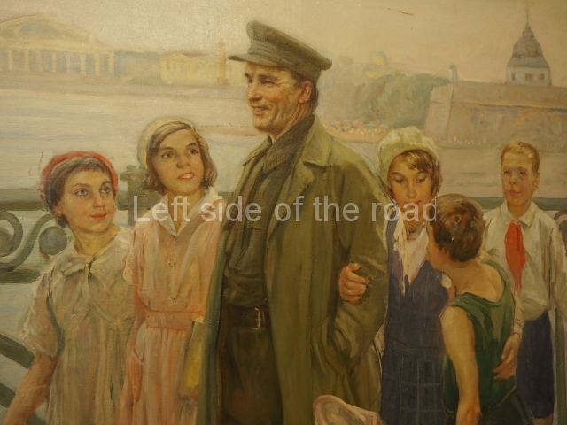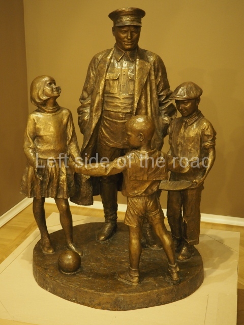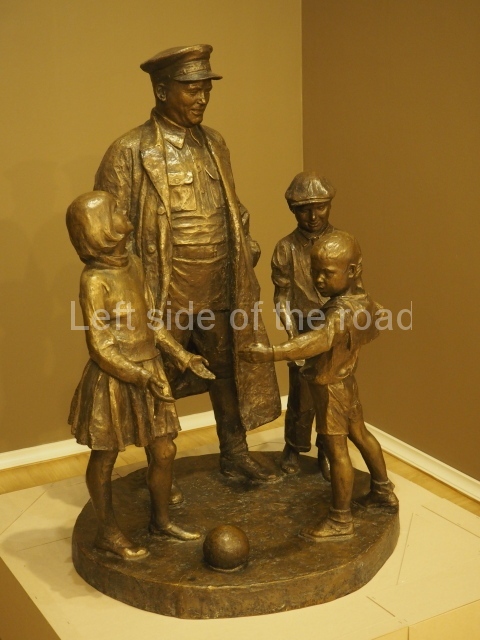 I don’t know if these are actually made of metal, as they appear, or are, on the other hand, plaster casts which have been painted with a metallic paint. What tends to go against the latter explanation is the almost pristine condition of the cast. There’s no sign whatsoever of any chipping – which does appear in some of the items in the Moscow Metro that are not all what they seem. If I get definitive information about this I’ll update. Unfortunately, to date, I have no information about the artists.