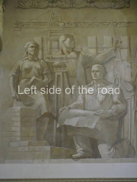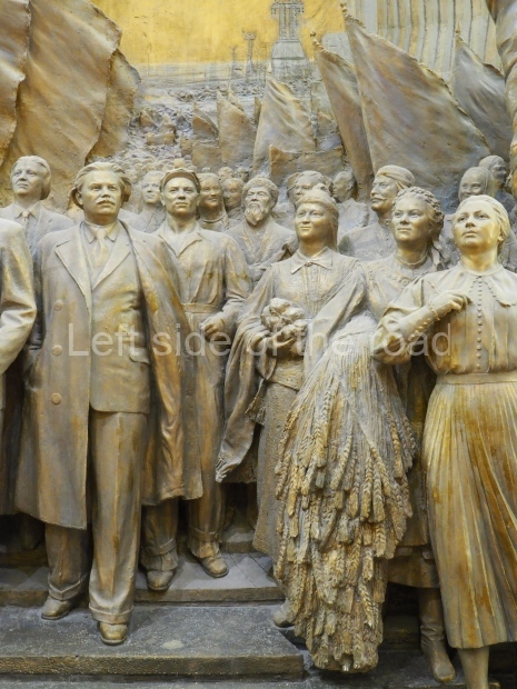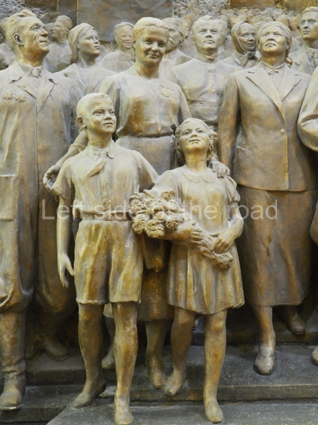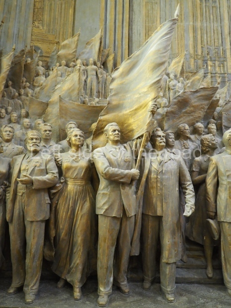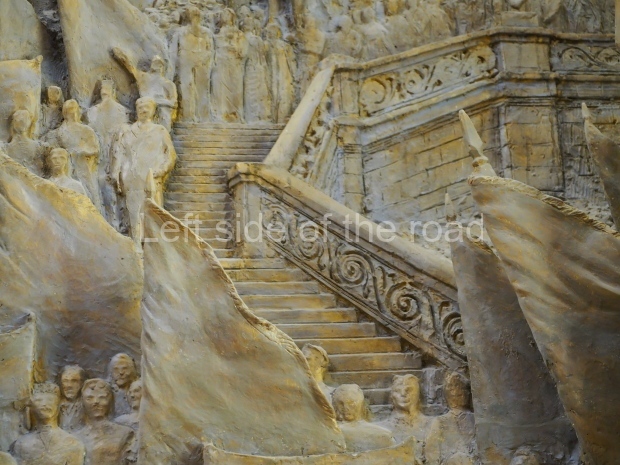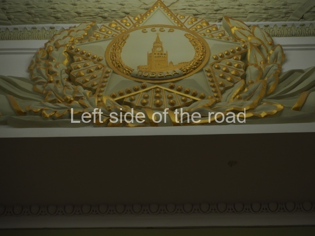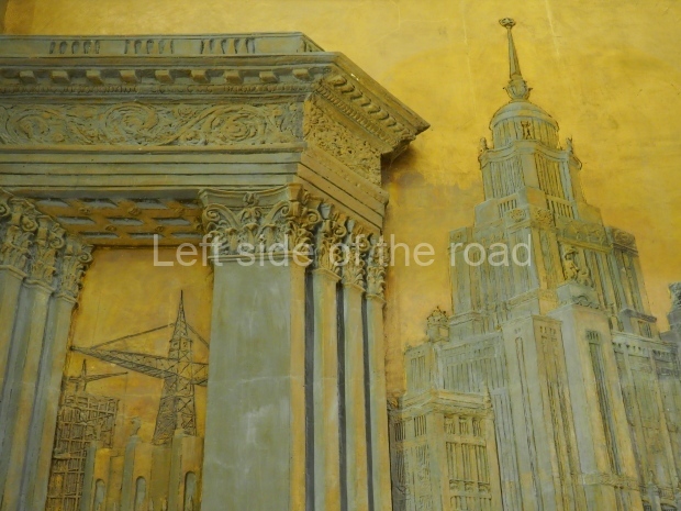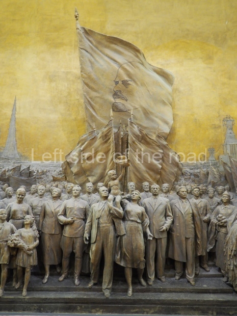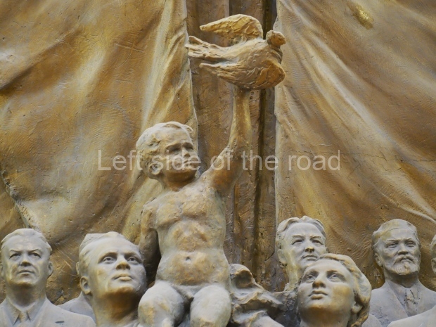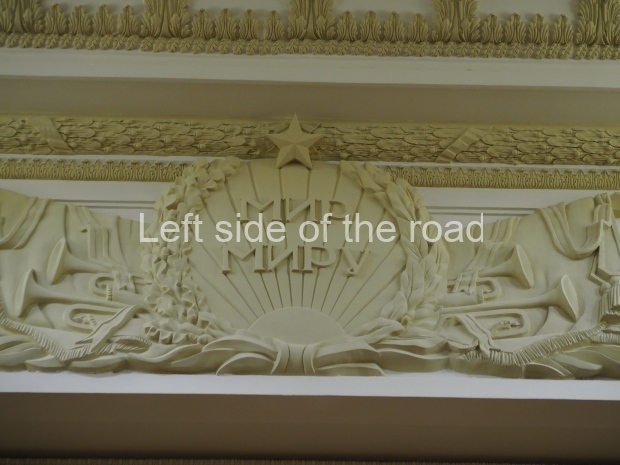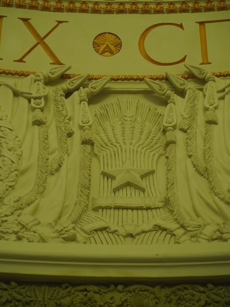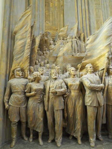 The two slide shows at the end of the post will, it is hoped, provide some idea of what it is like to be in the building. The first is of the structure and the artistic items in the building. The second is of the high relief composition created by Yevgeny Vuchetich, who also created, amongst many more, the statue of The Motherland Calls! (in Stalingrad), ‘Let us beat swords into ploughshares’ (a version of which is outside the main entrance to the New Tretyakov Gallery in Moscow), and the statue of Felix Dzerzhinsky (which used to stand in the square outside the Lubyanka Building and now is on display in Park Muzeon, alongside the New Tretyakov Gallery).