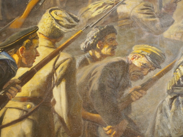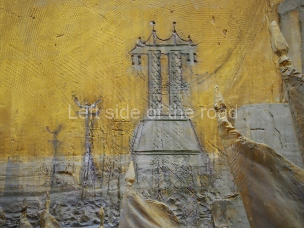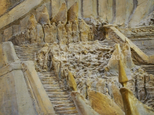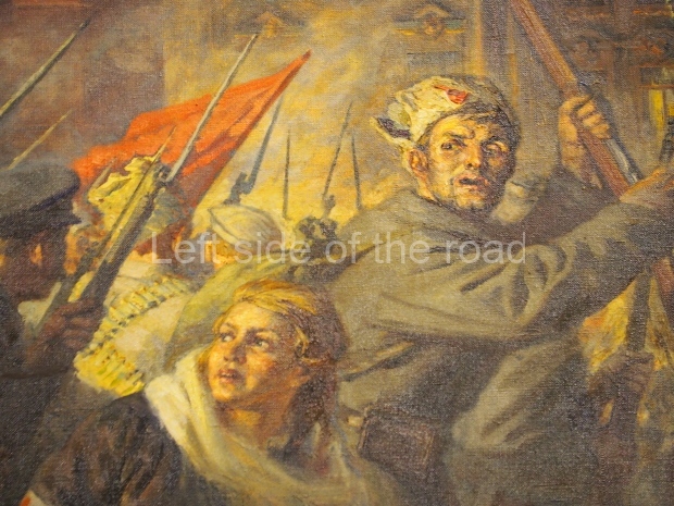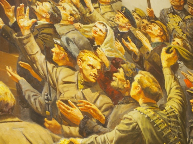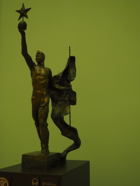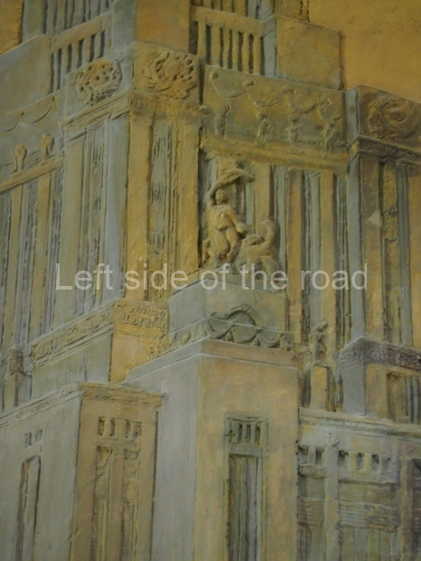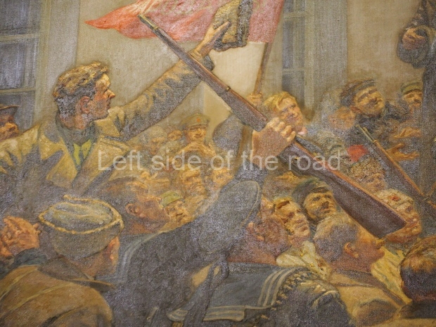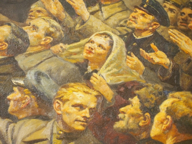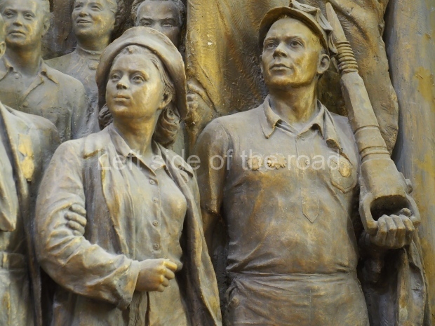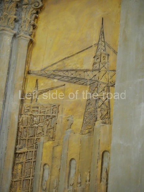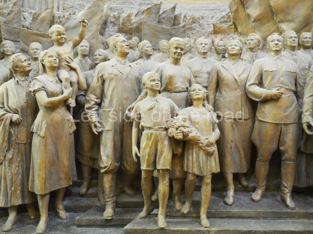 The two slide shows at the end of the post will, it is hoped, provide some idea of what it is like to be in the building. The first is of the structure and the artistic items in the building. The second is of the high relief composition created by Yevgeny Vuchetich, who also created, amongst many more, the statue of The Motherland Calls! (in Stalingrad), ‘Let us beat swords into ploughshares’ (a version of which is outside the main entrance to the New Tretyakov Gallery in Moscow), and the statue of Felix Dzerzhinsky (which used to stand in the square outside the Lubyanka Building and now is on display in Park Muzeon, alongside the New Tretyakov Gallery).