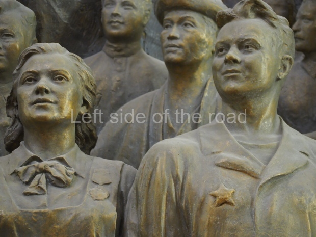 This version of the sculpture is different from the one created in 1954. Back then, there used to be portraits of Lenin, Stalin, Marx and Engels on the flag; after the de-Stalinization, however, only Lenin’s profile was left. The man and the woman up front used to hold the USSR coat of arms which was later replaced by a baby holding a dove, the symbol of peace. Specialists decided to restore the later variant.