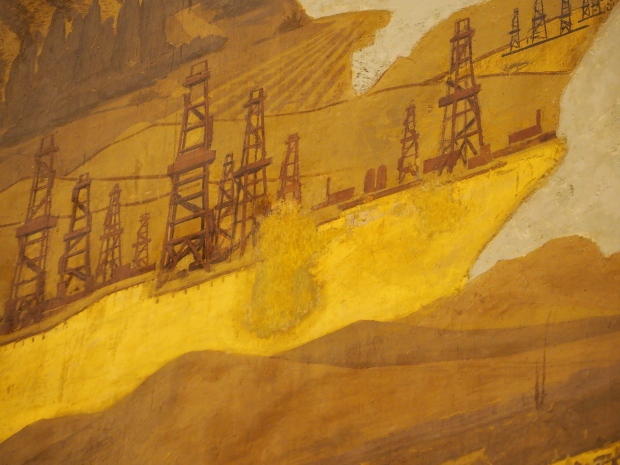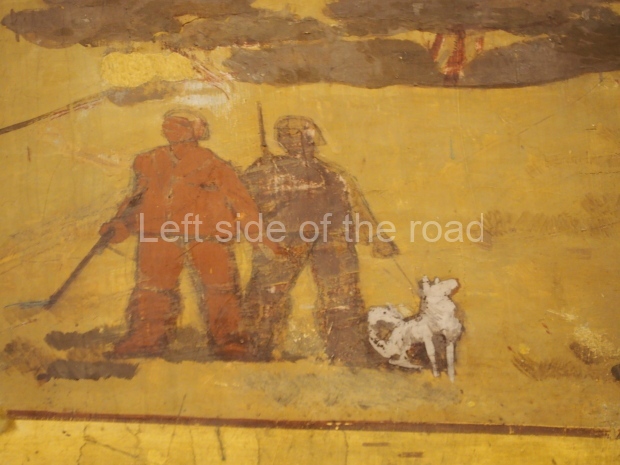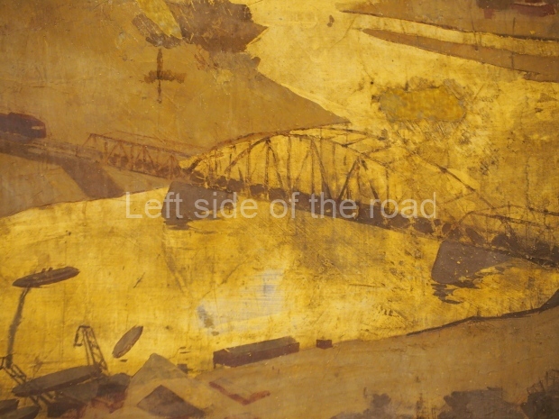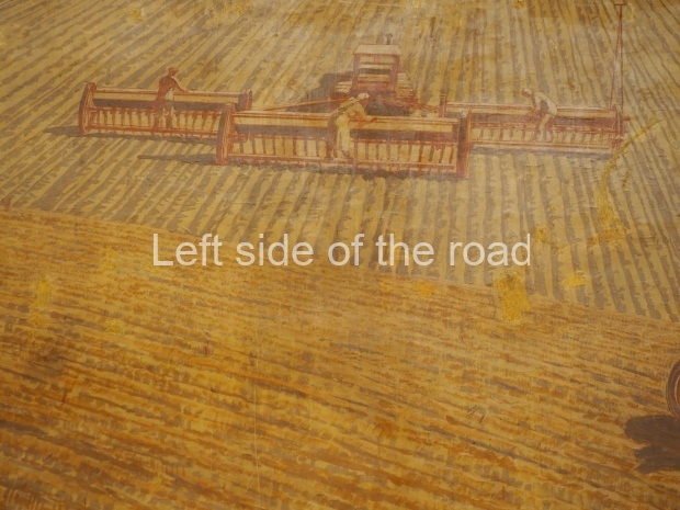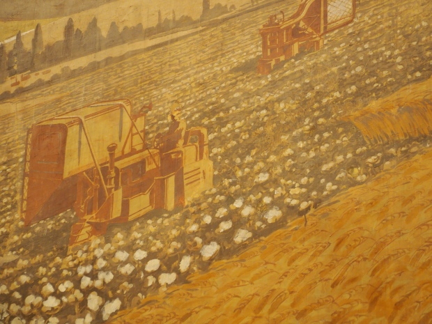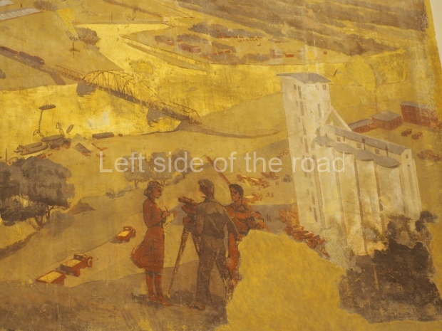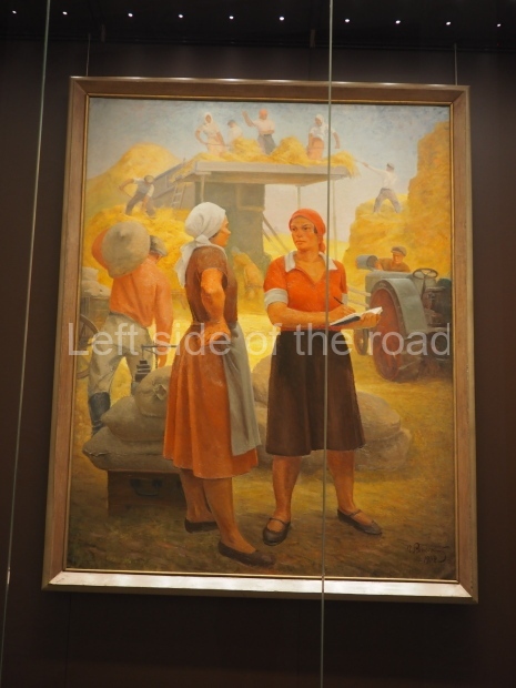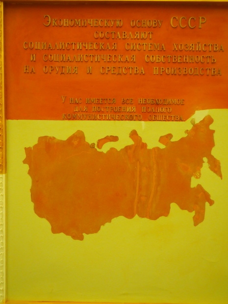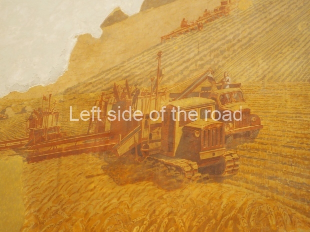 There is another farming-themed panel by unknown painter on the wall there. It is a map of the USSR machine and tractor stations (MTSs) with landscapes, fields and combine harvesters in the corners.