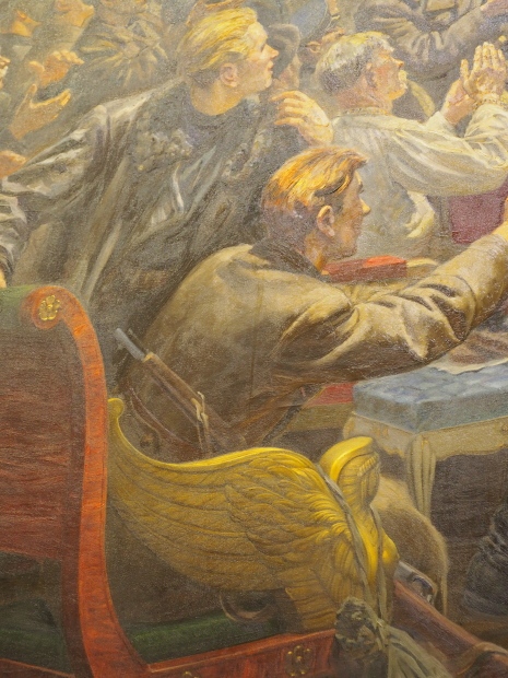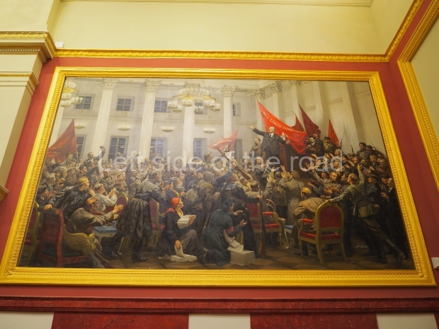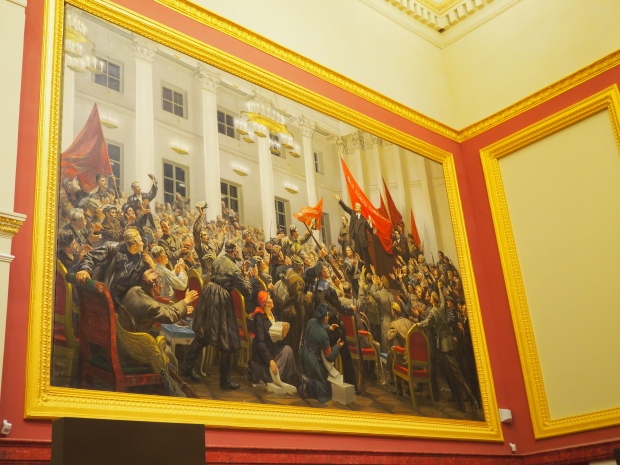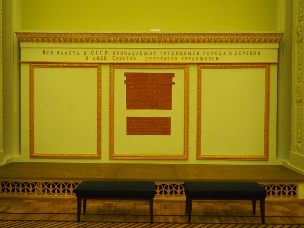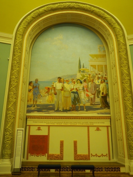 The initial plan was to put the giant painting by Alexander Gerasimov, called ‘Stalin Pronounces the Union-Wide Agricultural Exhibition Open at the 2nd Congress of Kolkhoz Workers and Exceptional Employees’, up there. The painting is currently being restored.